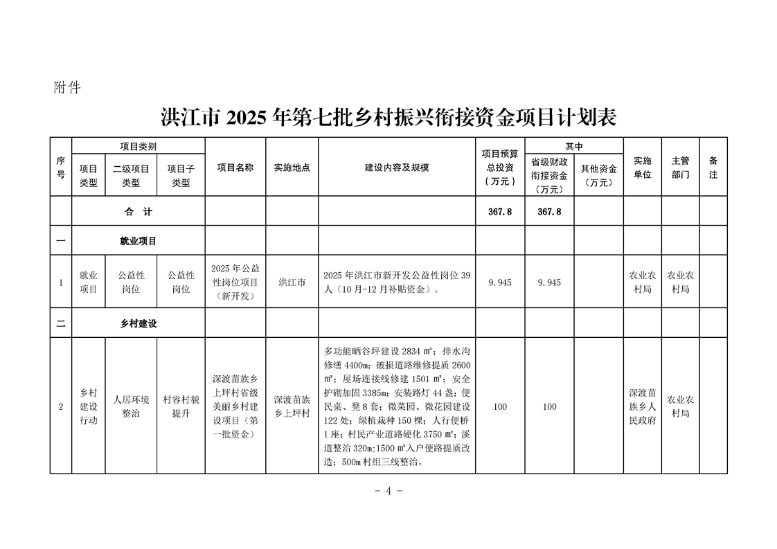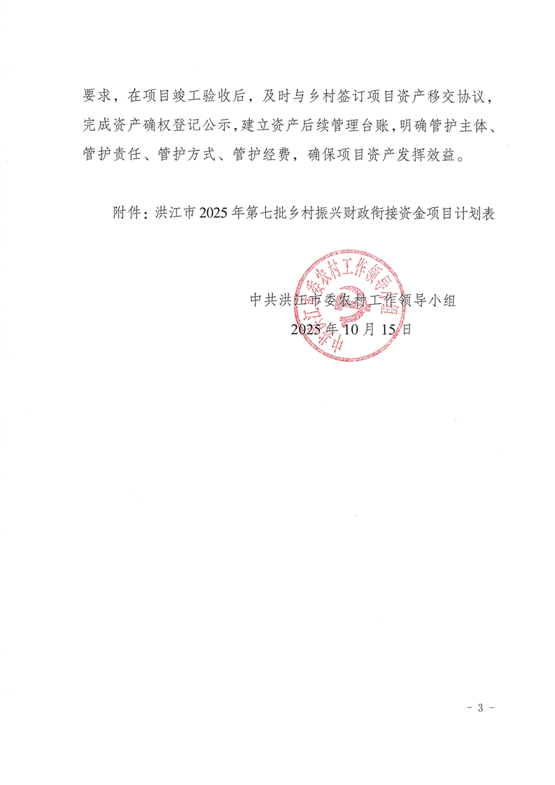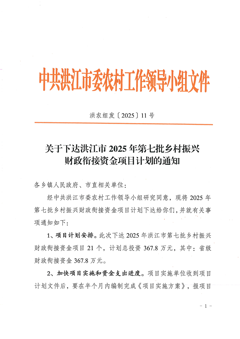 关于下达洪江市2025年第七批乡村振兴财政衔接资金项目计划的通知