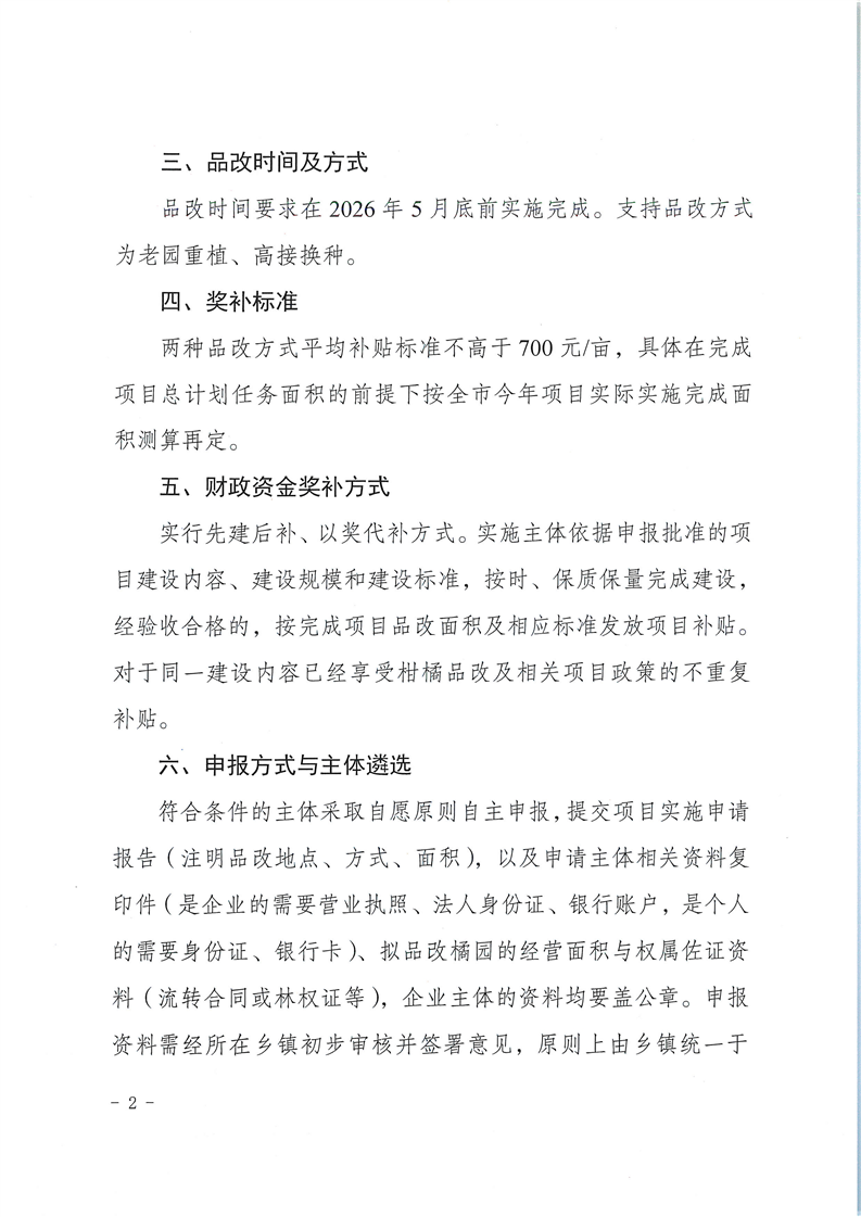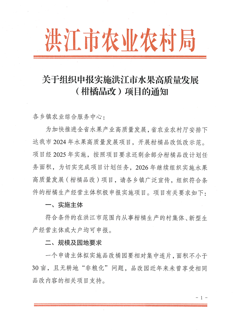 关于组织申报实施洪江市水果高质量发展(柑橘品改)项目的通知