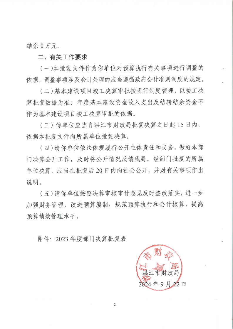 关于批复洪江市农业科学研究所2023年度部门决算的通知