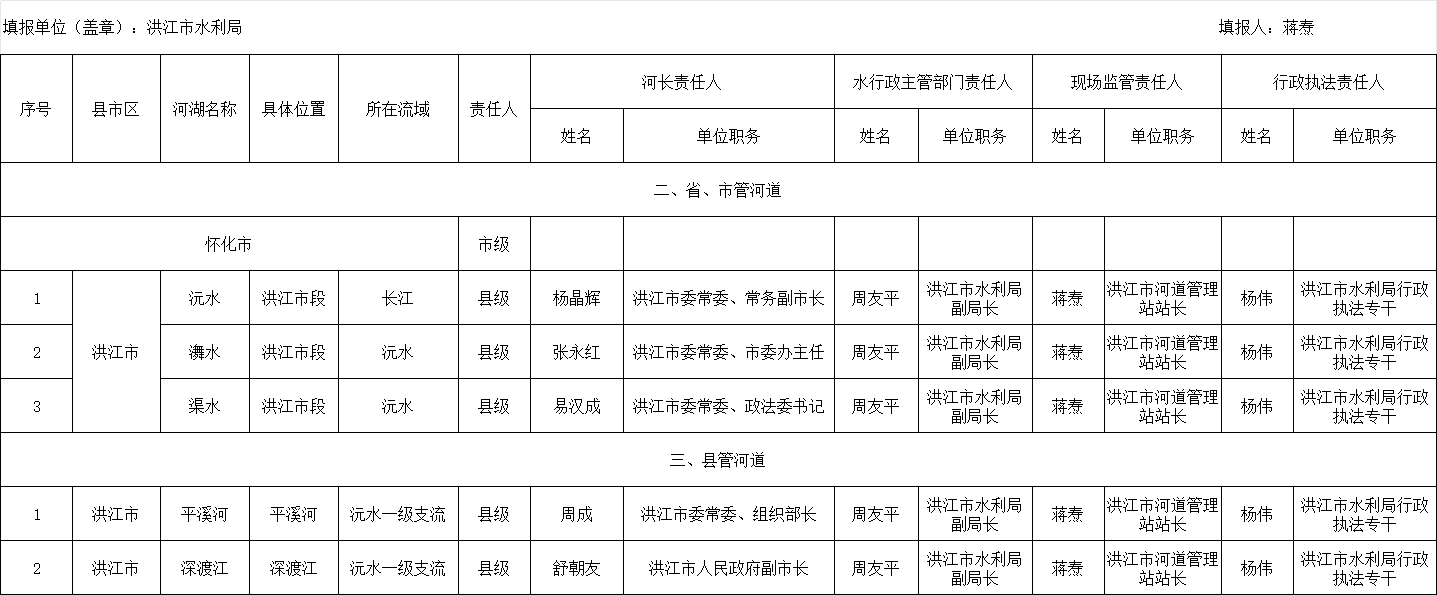 洪江市2026年重点河段、敏感水域河道采砂管理责任人表