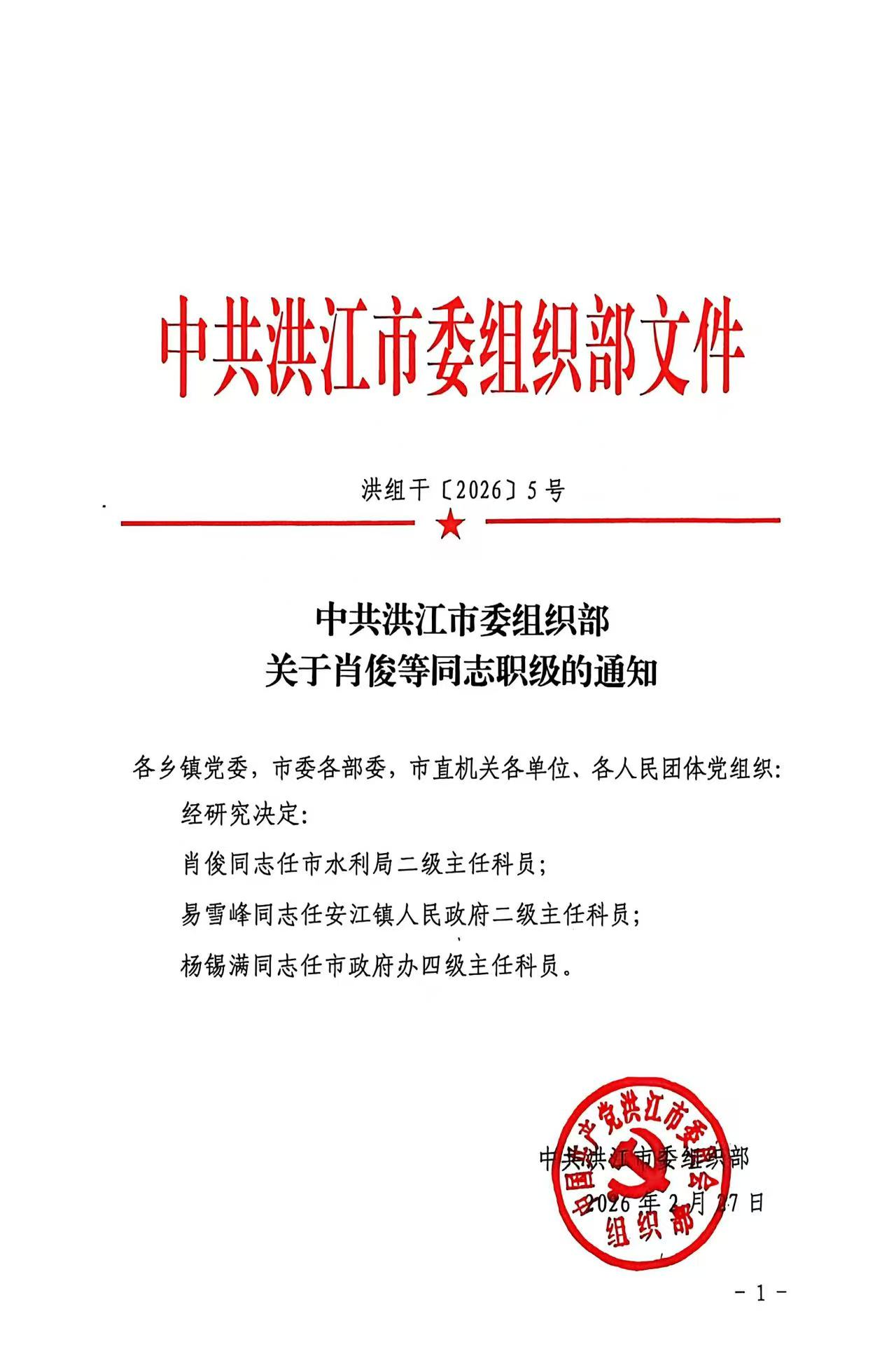 中共洪江市委组织部关于肖俊等同志职级的通知