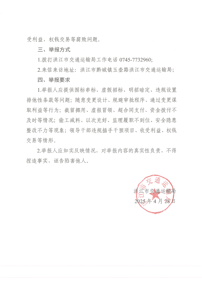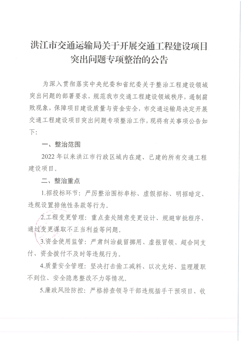 洪江市交通运输局关于开展交通工程建设项目突出问题专项整治的公告