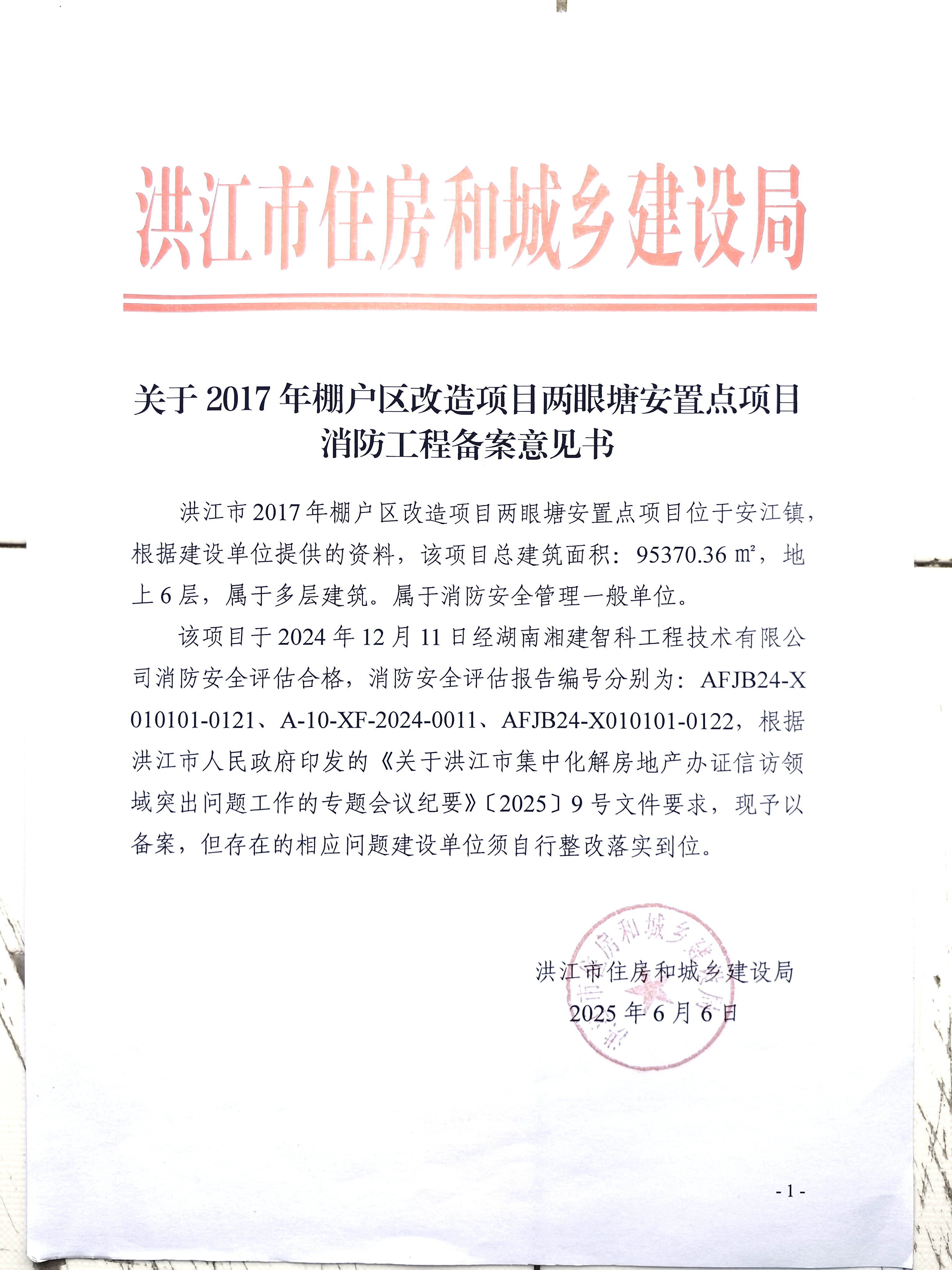 关于2017年棚户区改造项目两眼塘安置点项目消防工程备案意见书