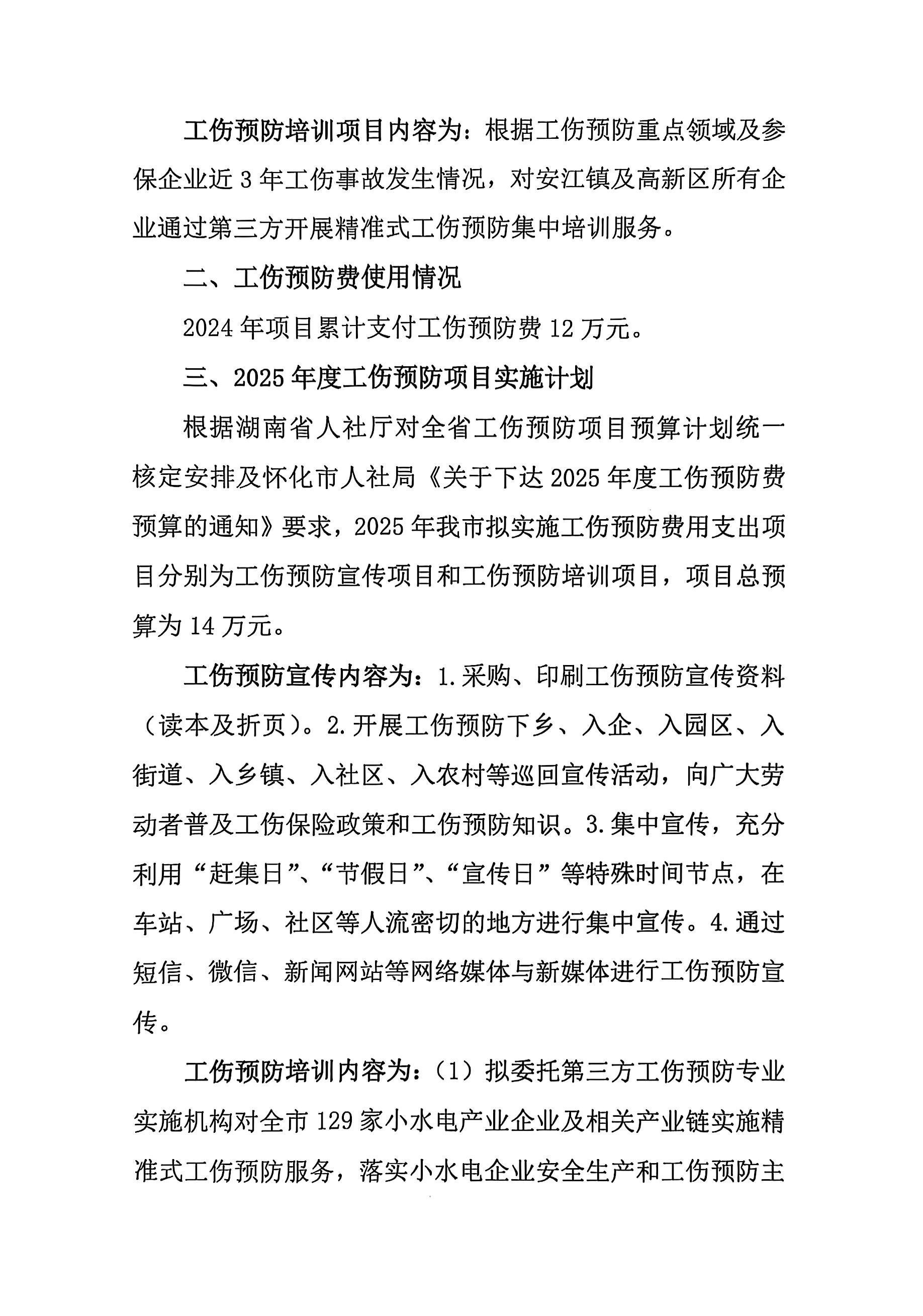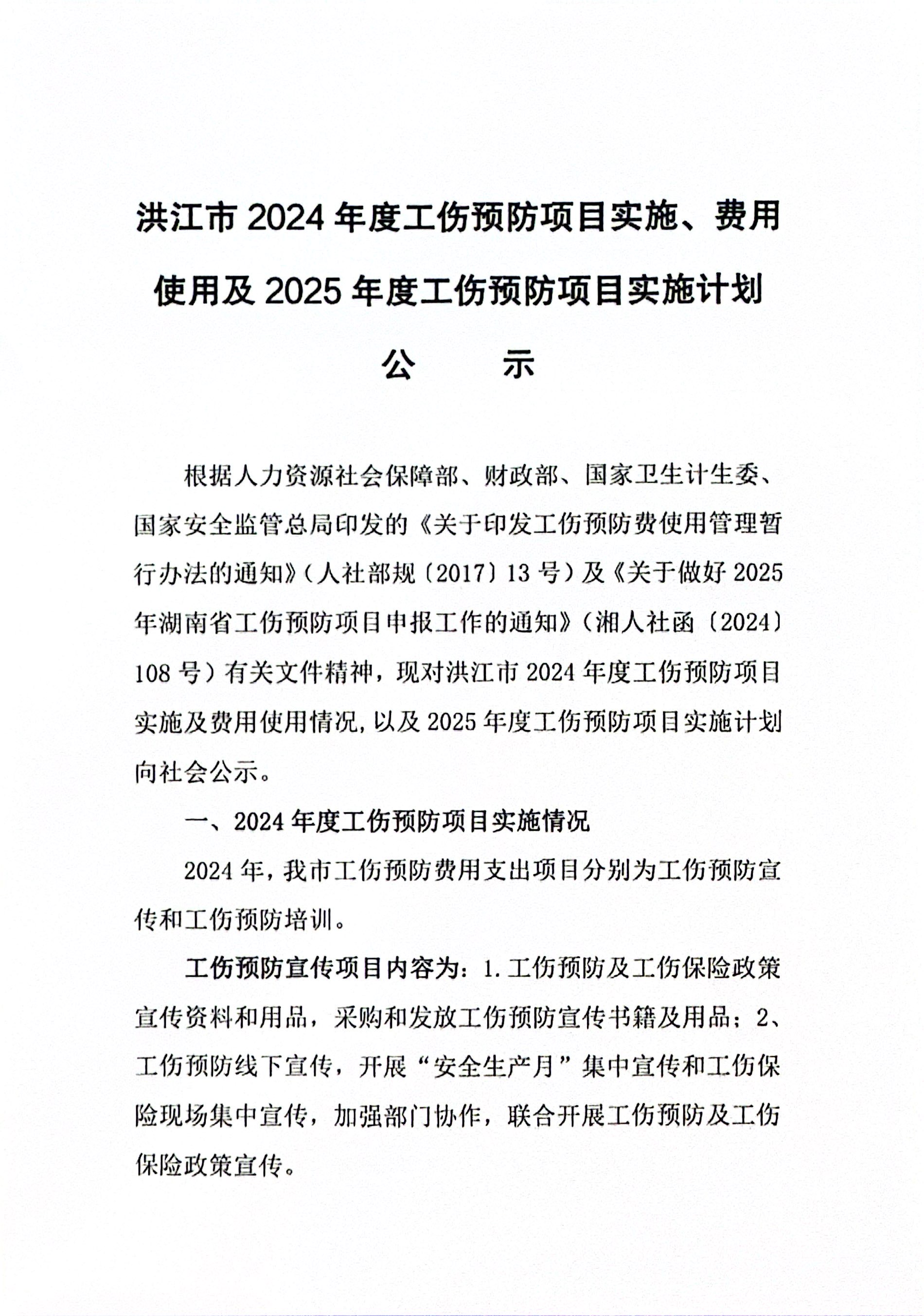 洪江市2024年度工伤预防项目实施、费用使用及2025年度工伤预防项目实施计划公示