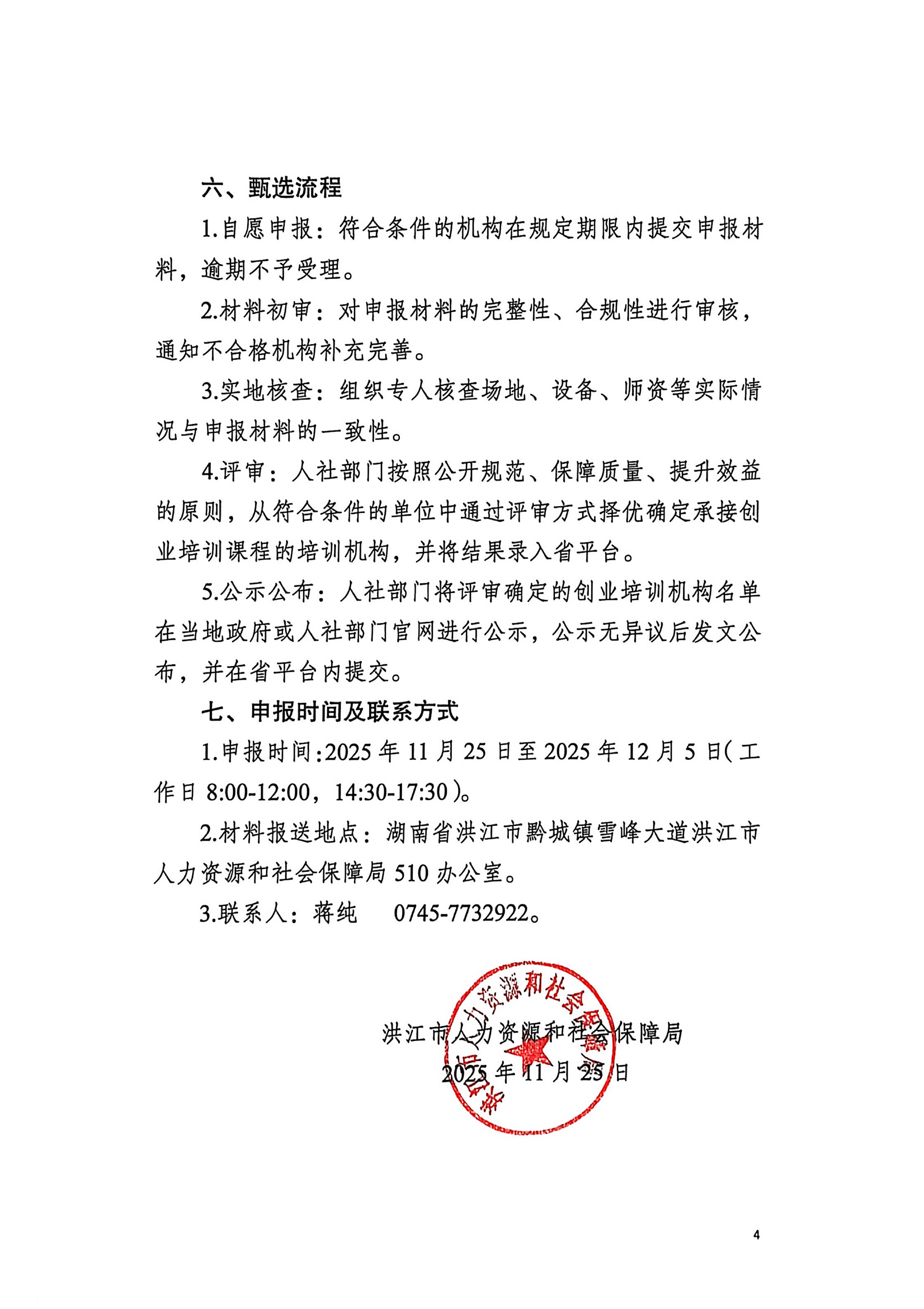 关于开展洪江市2026-2028年度创业培训机构认定工作的公告
