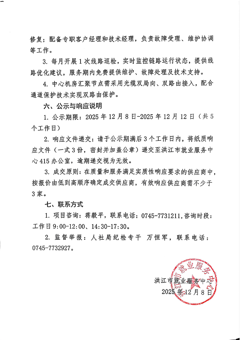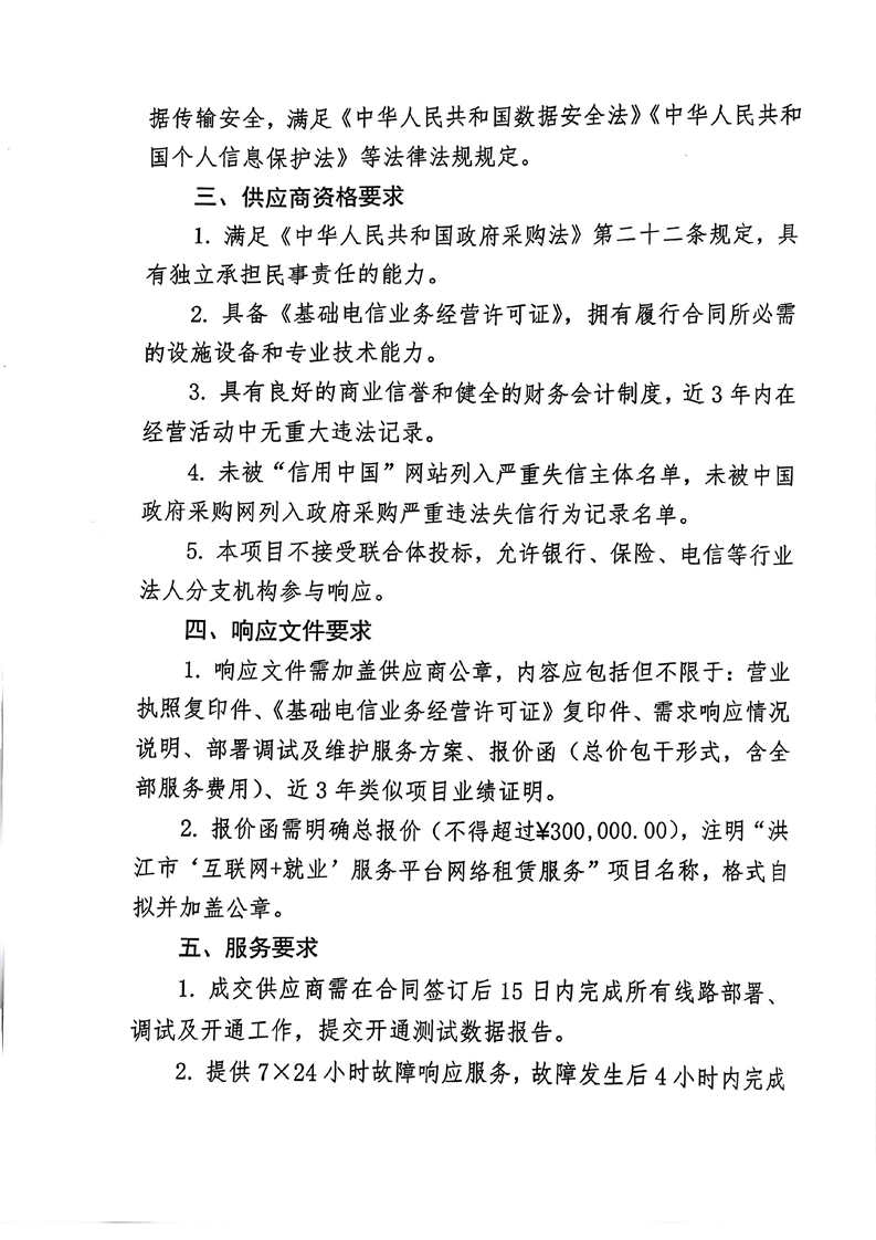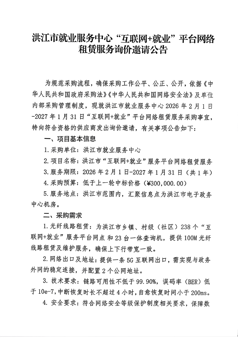 洪江市就业服务中心“互联网+就业”平台网络租赁服务询价邀请公告