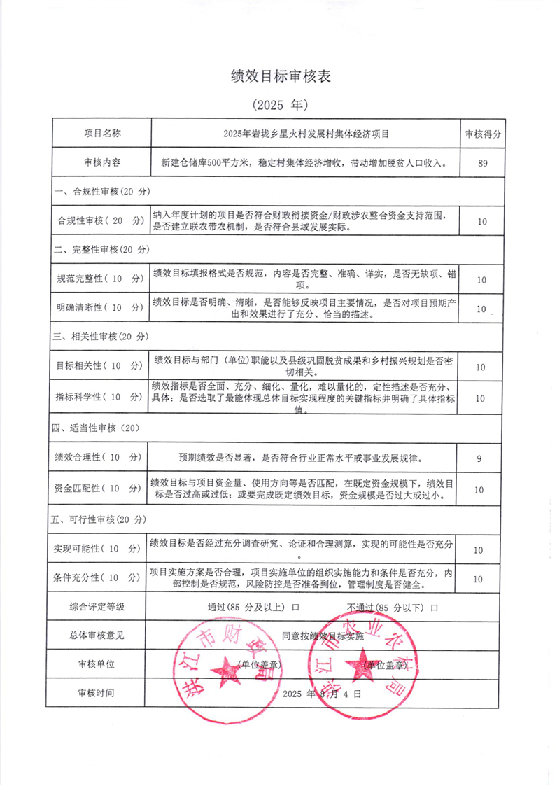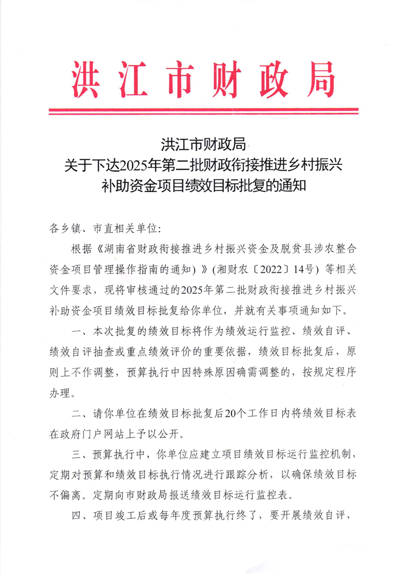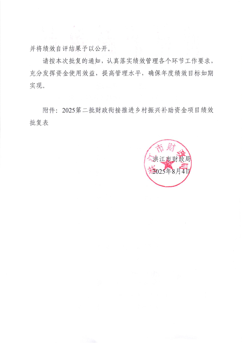 关于下达2025年第二批财政衔接推进乡村振兴补助资金项目绩效目标批复的通知