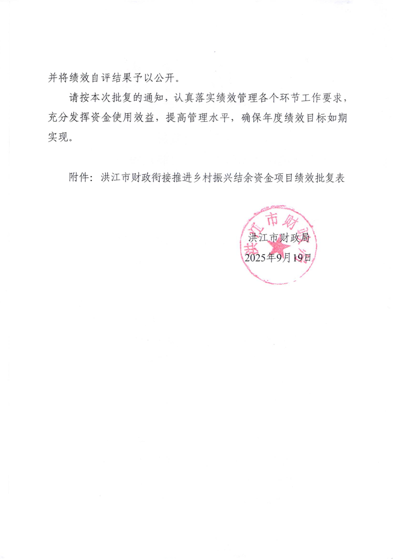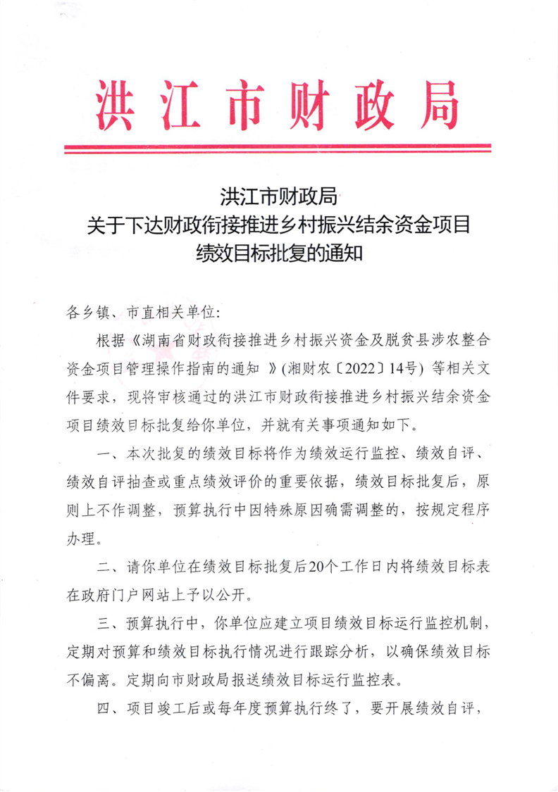 洪江市财政局关于下达财政衔接推进乡村振兴结余资金项目绩效目标批复的通知