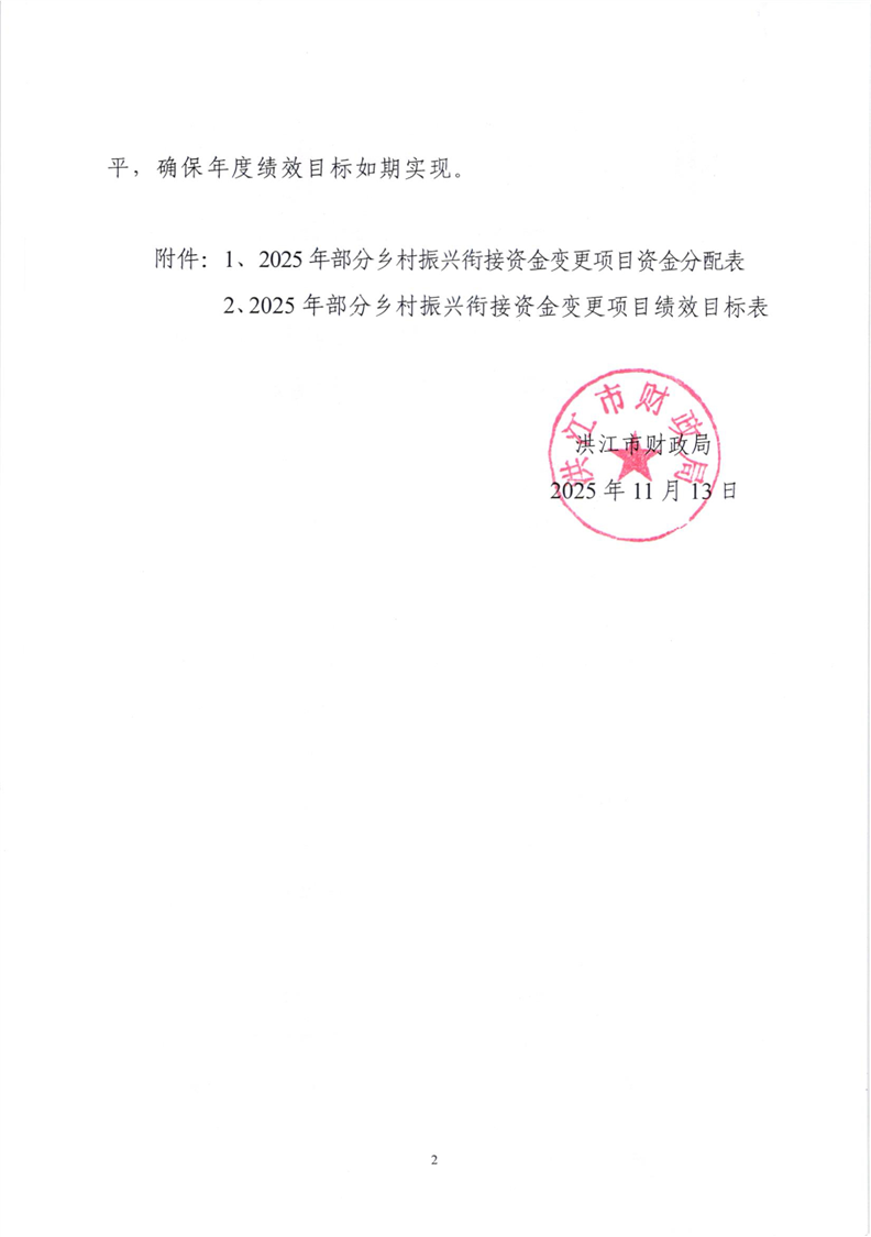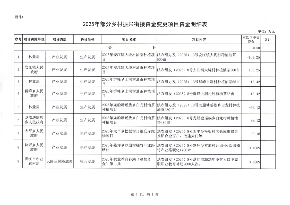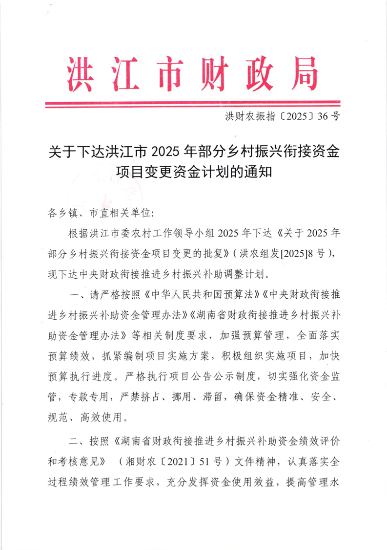关于下达洪江市2025年部分乡村振兴衔接资金项目变更资金计划的通知