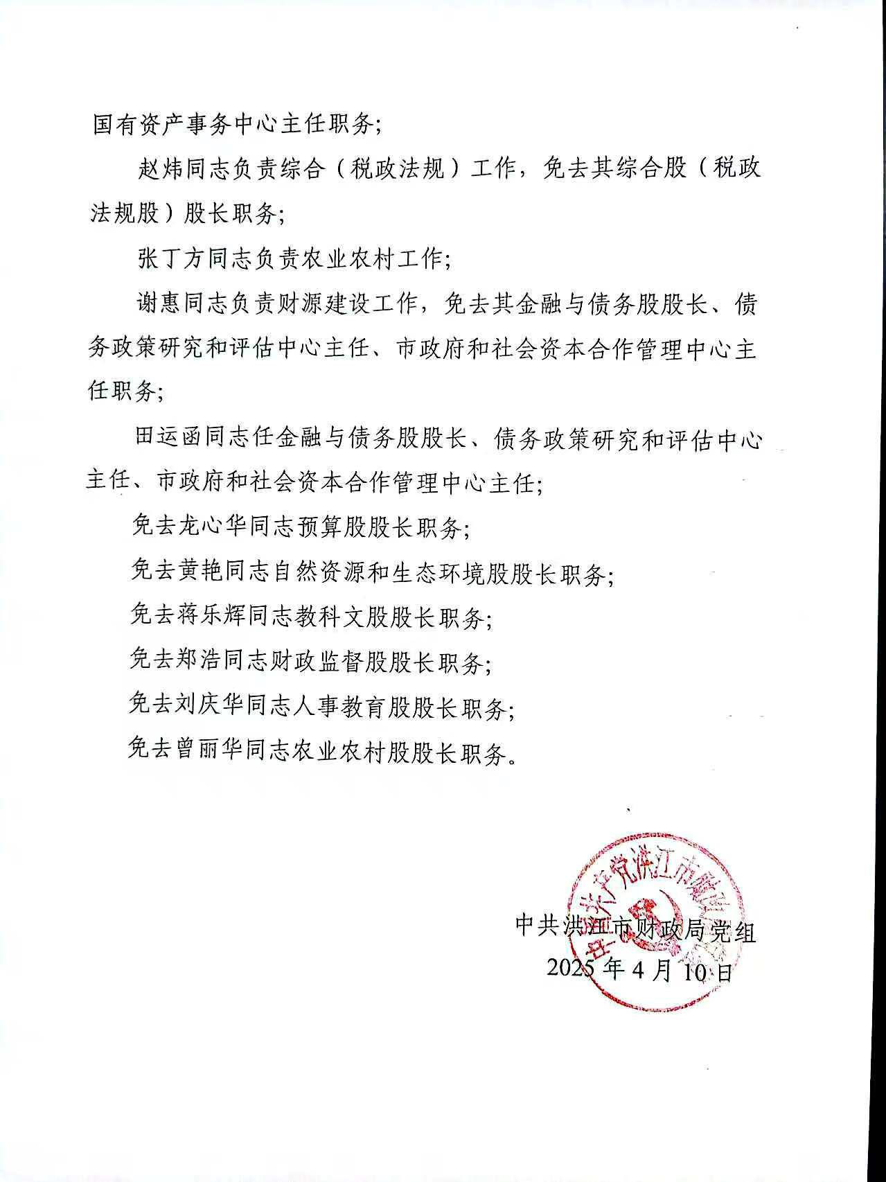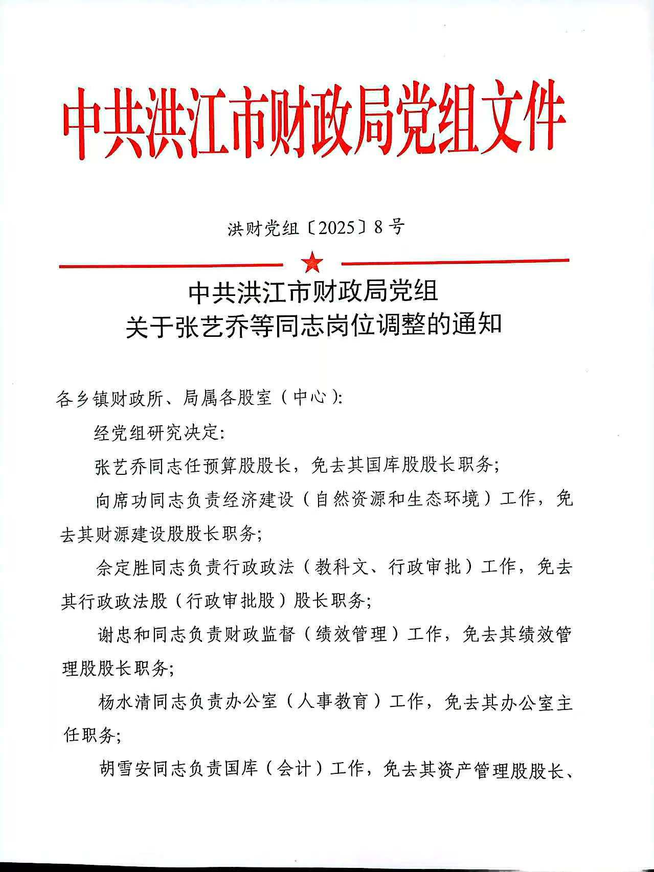 中共洪江市财政局党组关于张艺乔等同志岗位调整的通知