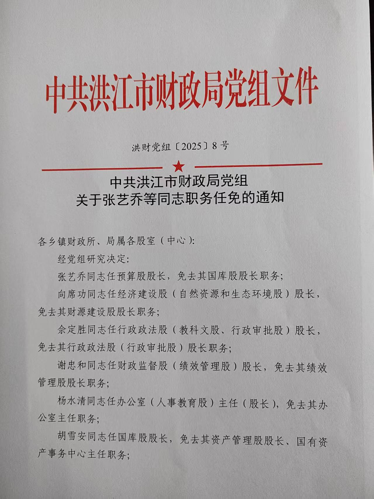 中共洪江市财政局党组关于张艺乔等同志职务任免的通知