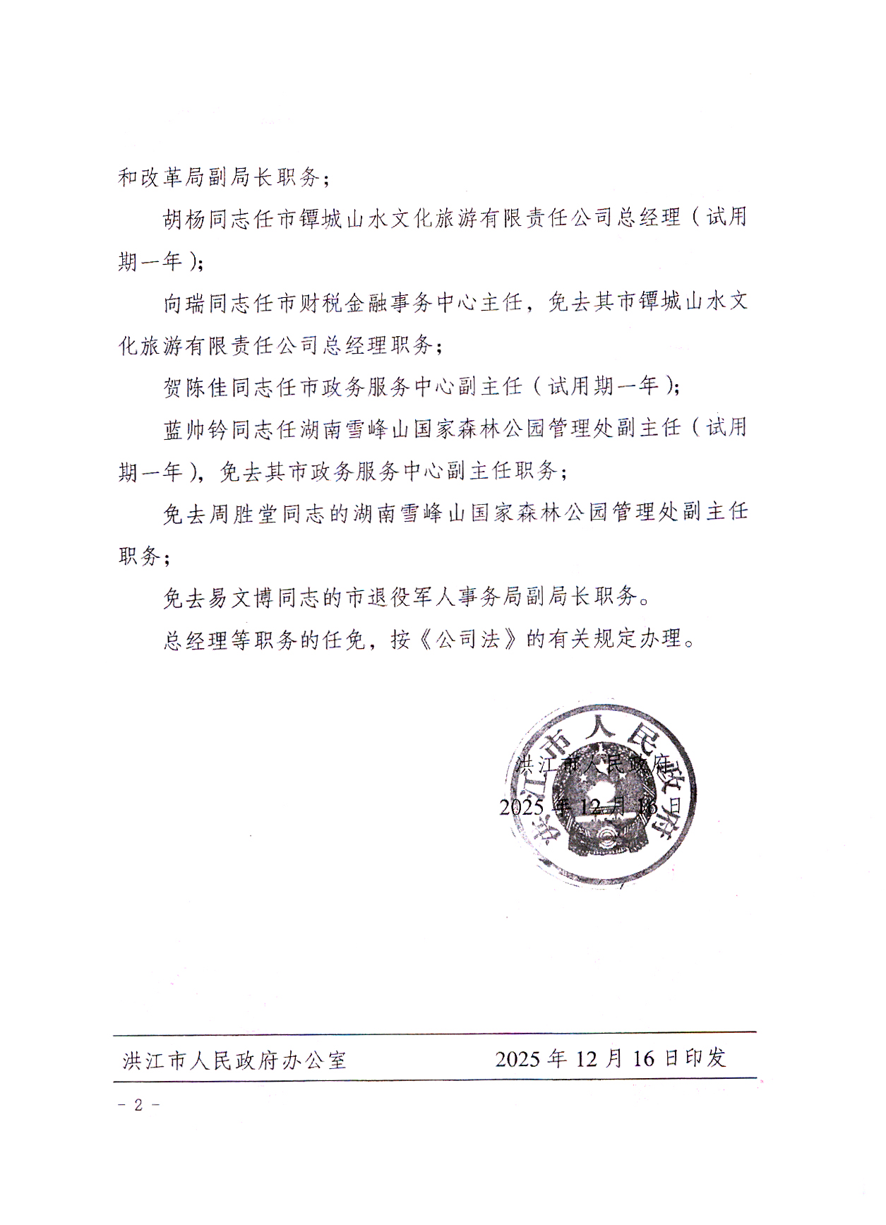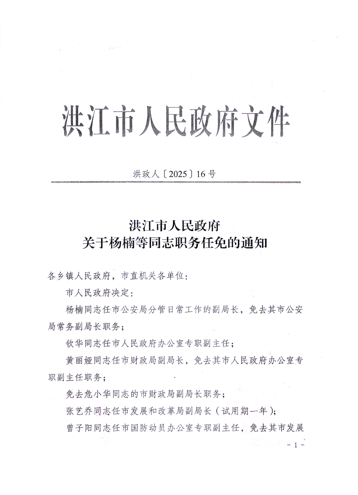 洪江市人民政府关于杨楠等同志职务任免的通知