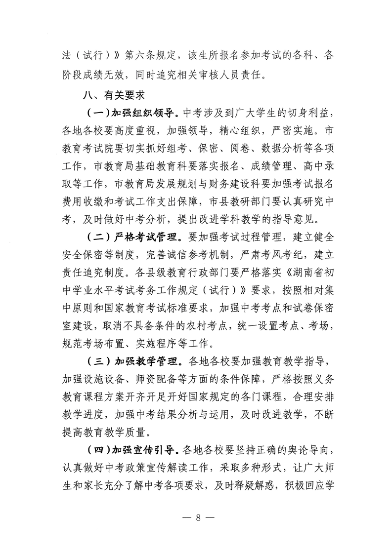 关于印发《怀化市初中学业水平考试工作方案》的通知