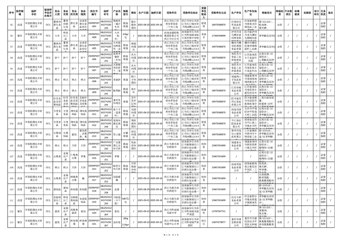 洪江市市场监督管理局2025年第4批流通、餐饮、生产环节抽样检验工作汇总表