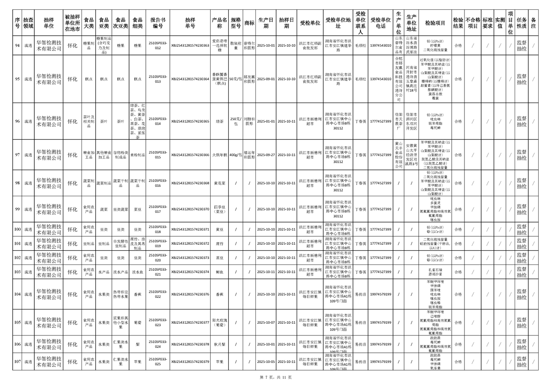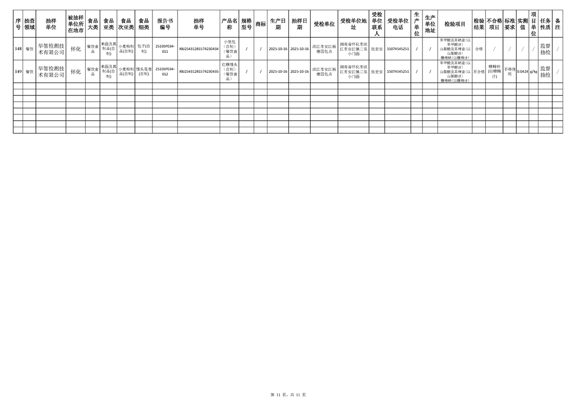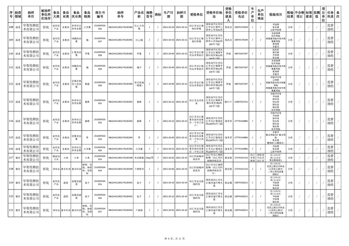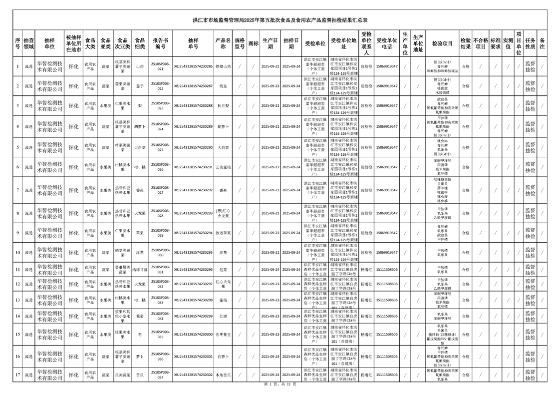 洪江市市场监督管理局2025年第五批次食品及食用农产品监督抽检结果汇总表