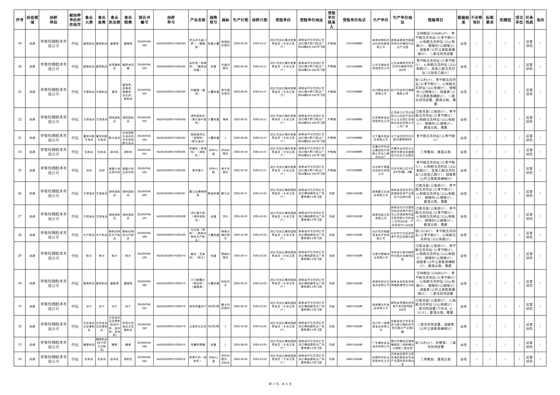 洪江市市场监督管理局2025年第六批次食品及食用农产品监督抽检结果汇总表