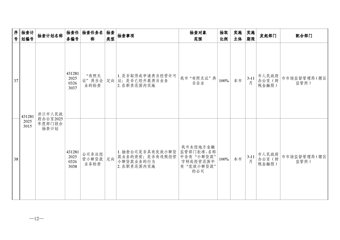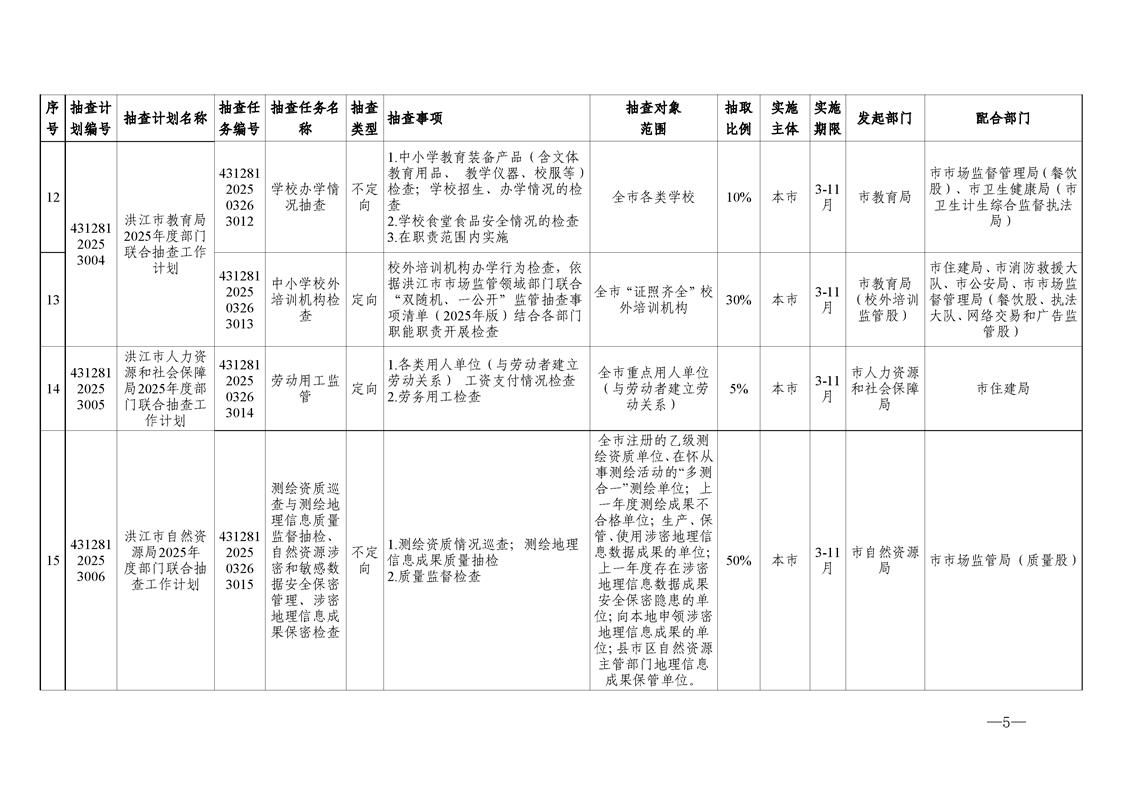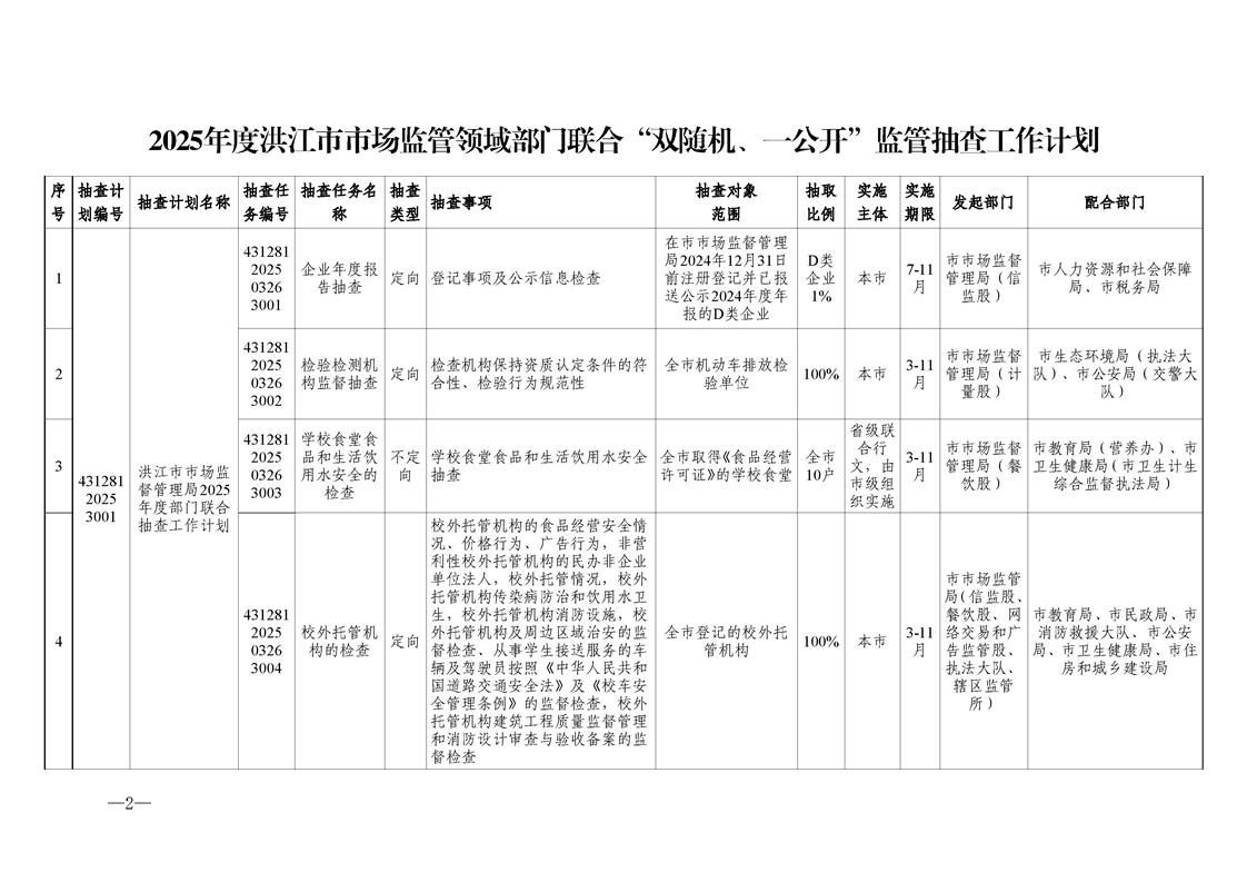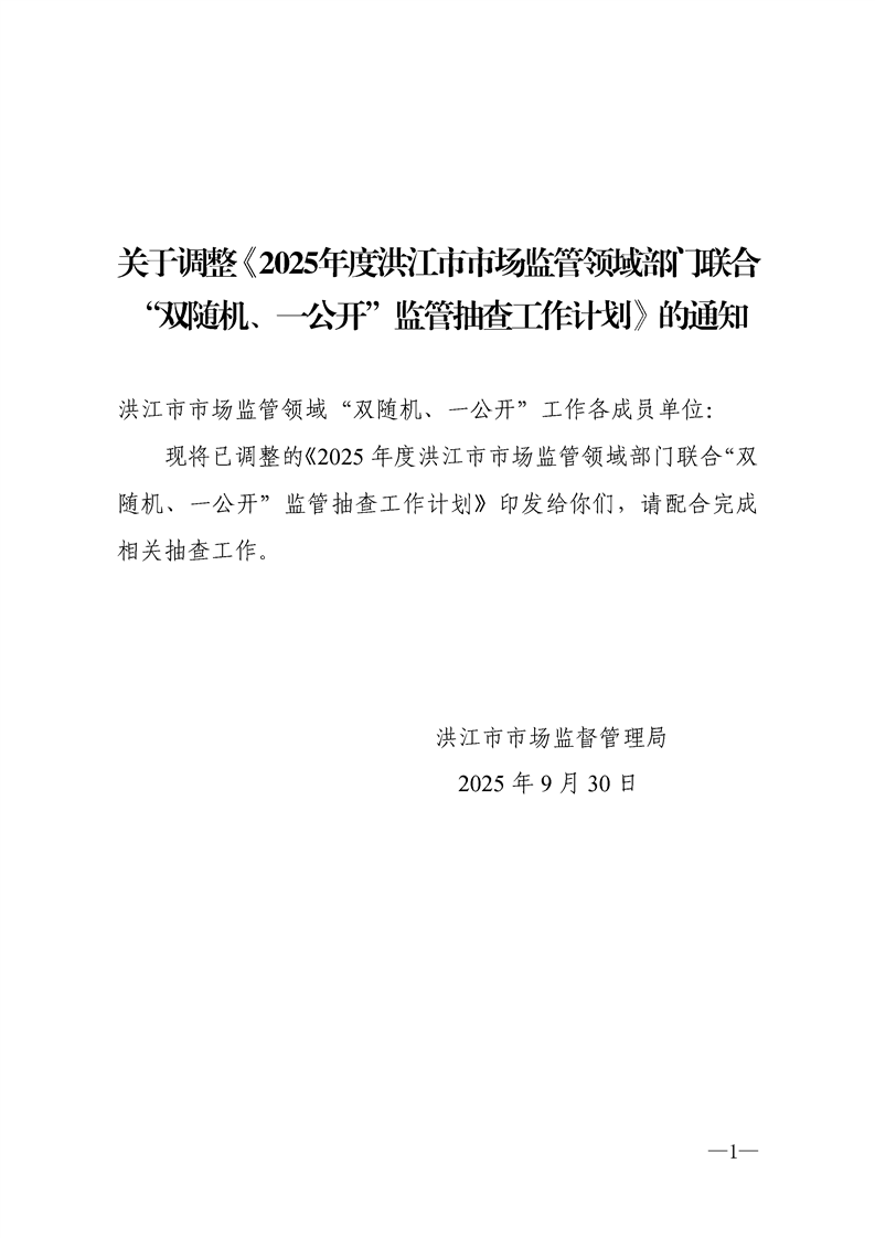 关于调整《2025年度洪江市市场监管领域部门联合“双随机、一公开”监管抽查工作计划》的通知