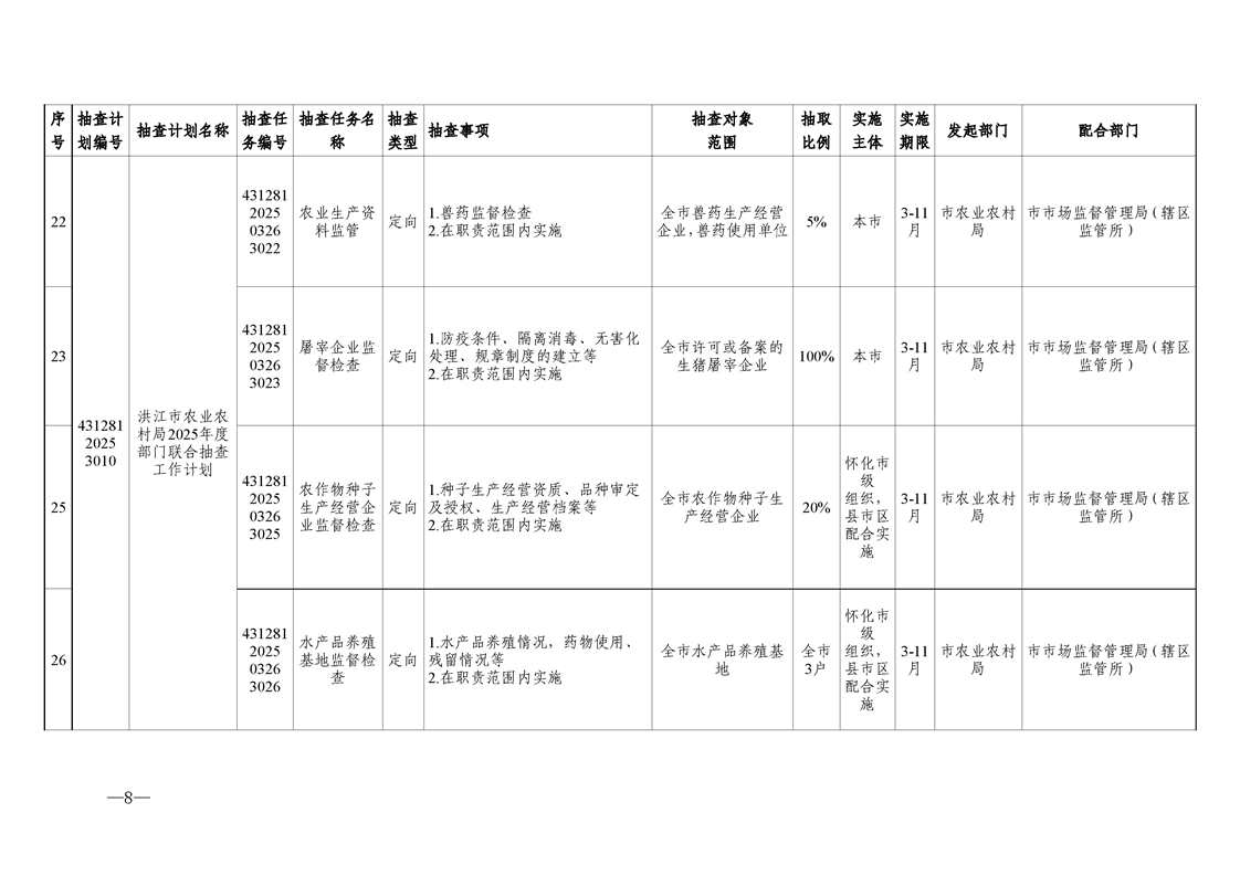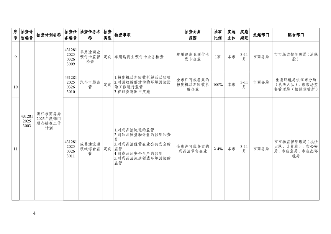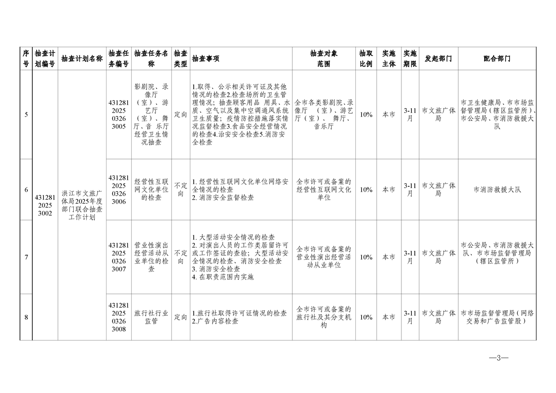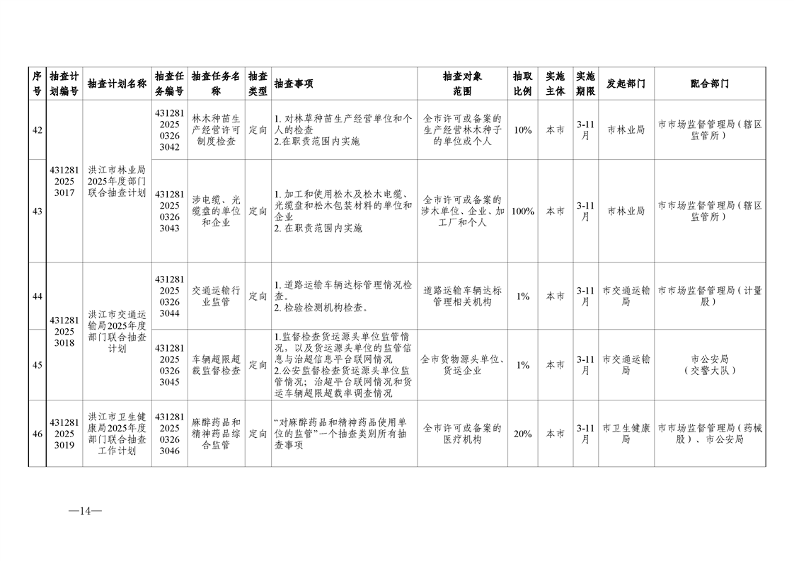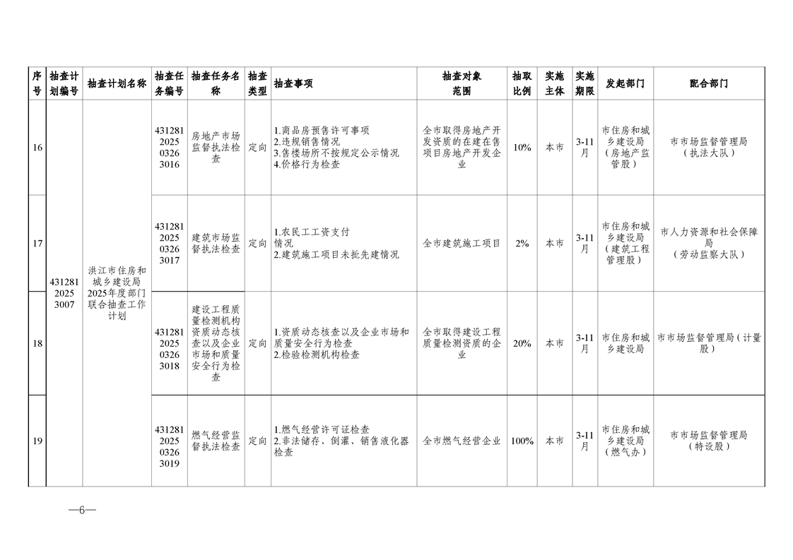 关于调整《2025年度洪江市市场监管领域部门联合“双随机、一公开”监管抽查工作计划》的通知