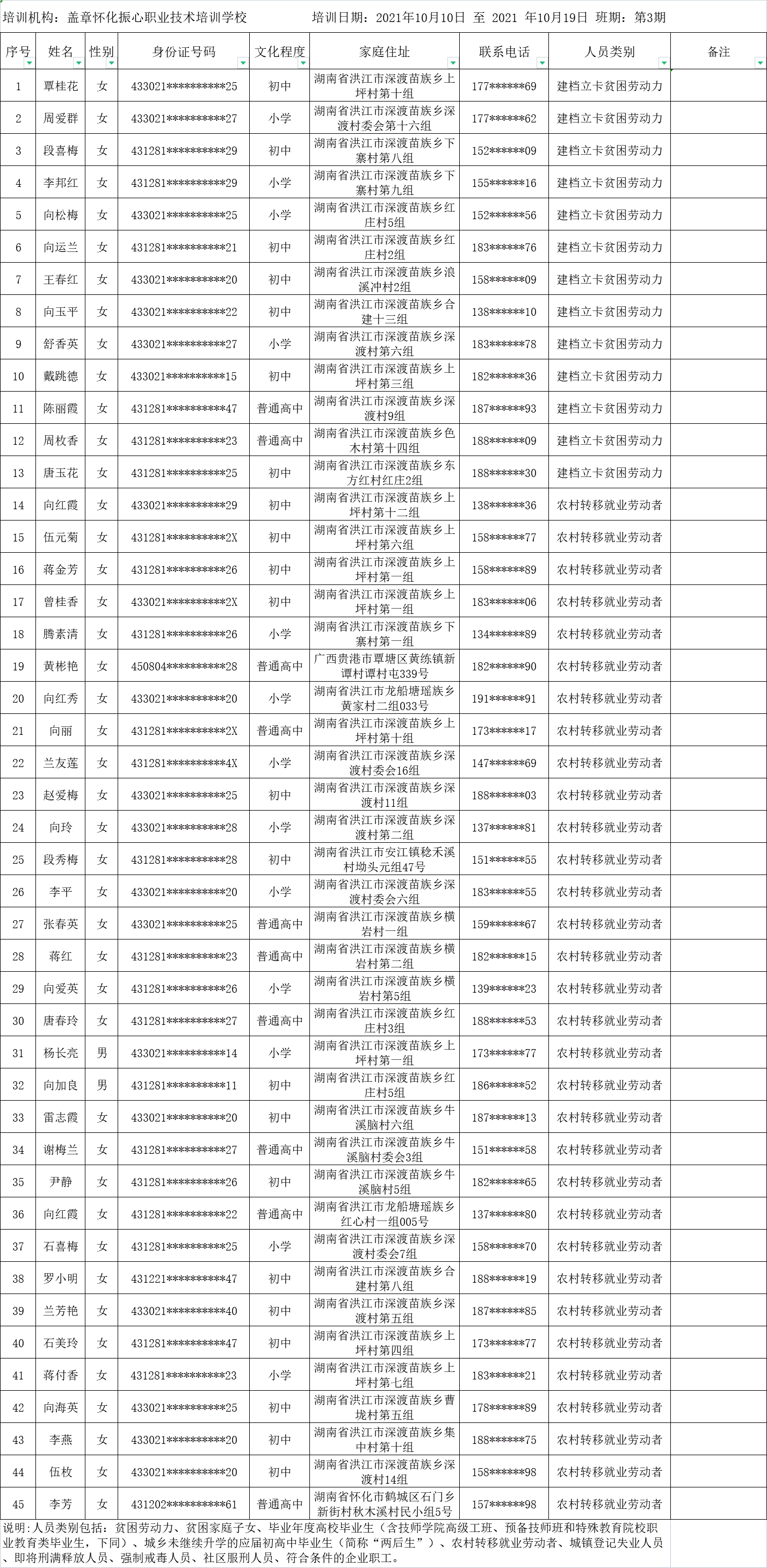 洪江市安江镇第三期中式面点师学员名单