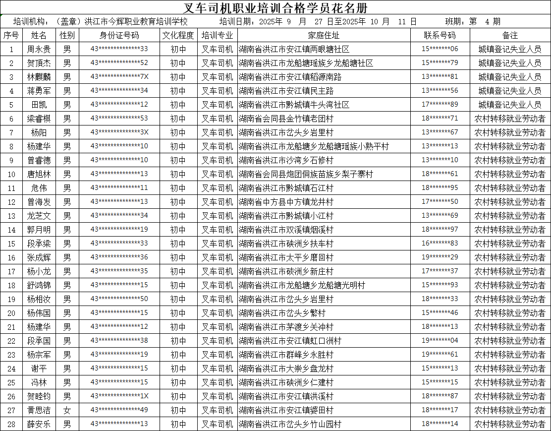 2025年叉车司机第四期合格名册