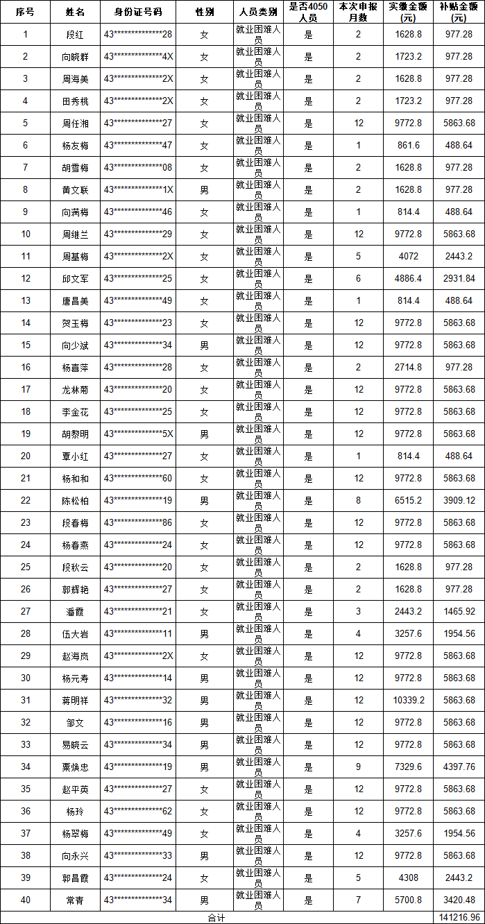 2025年度洪江市(第三批)灵活就业社保补贴明细表