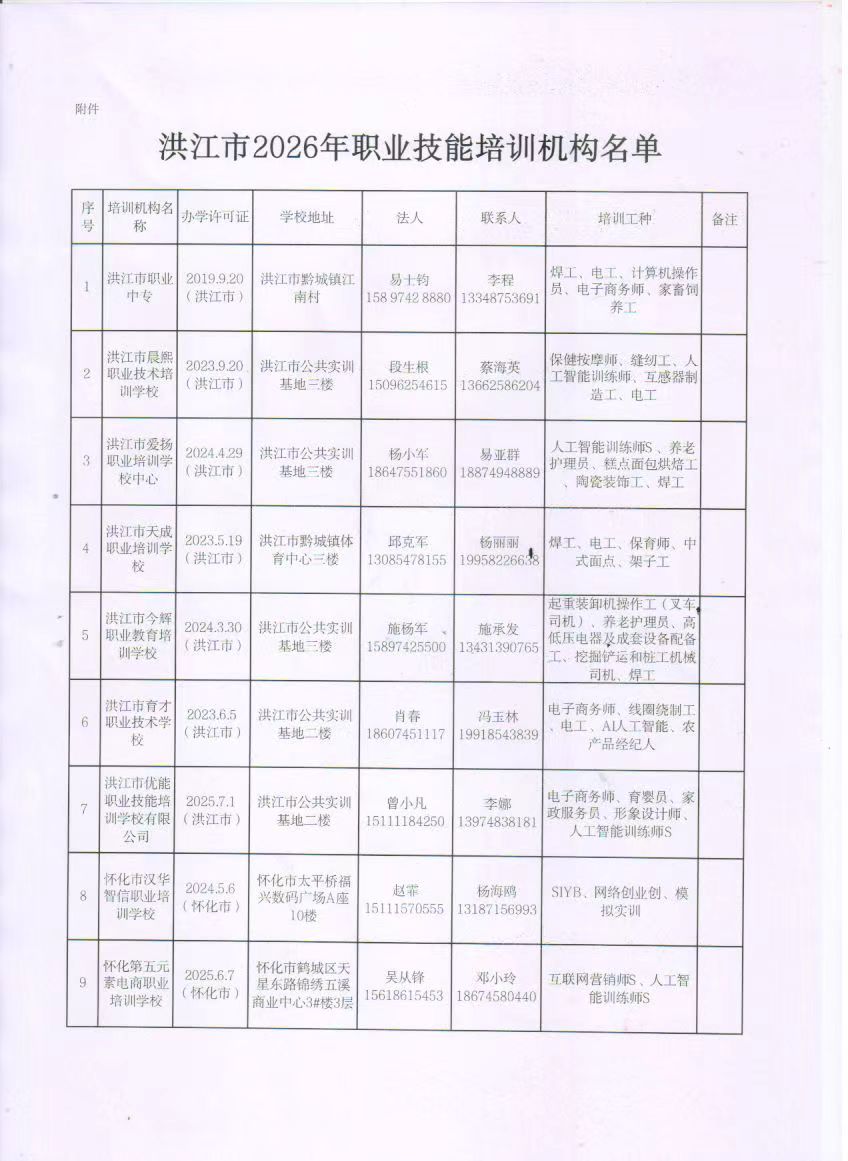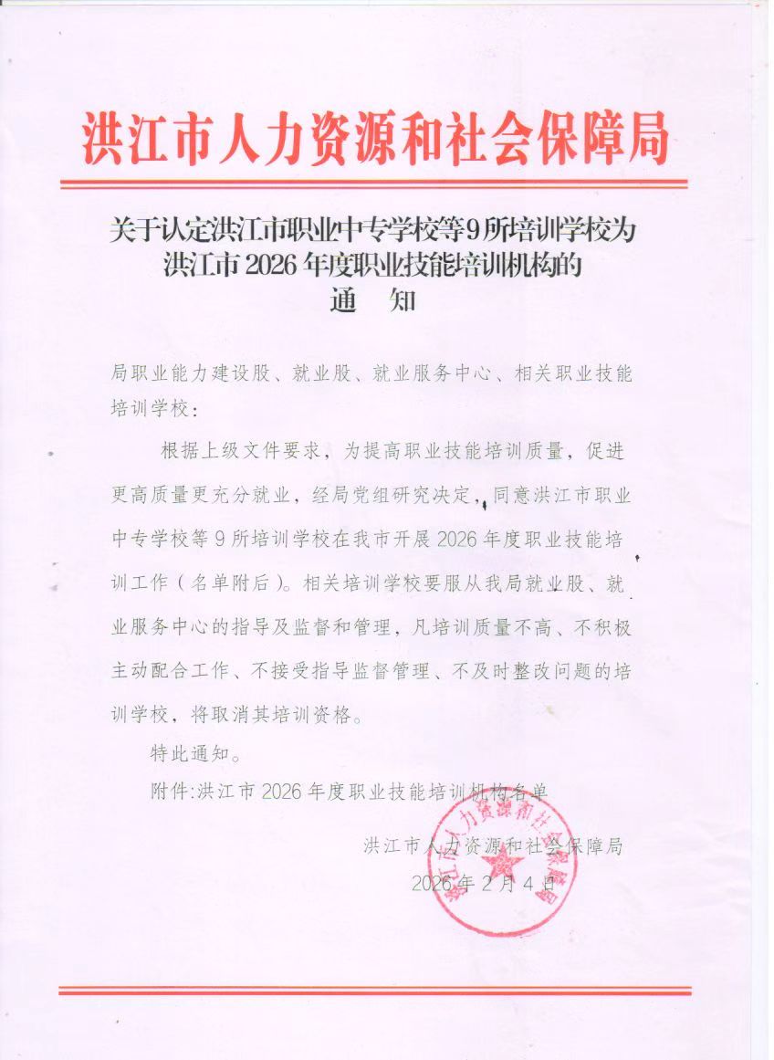关于认定洪江市职业中专学校等9所培训学校为洪江市2026年度职业技能培训机构的通知