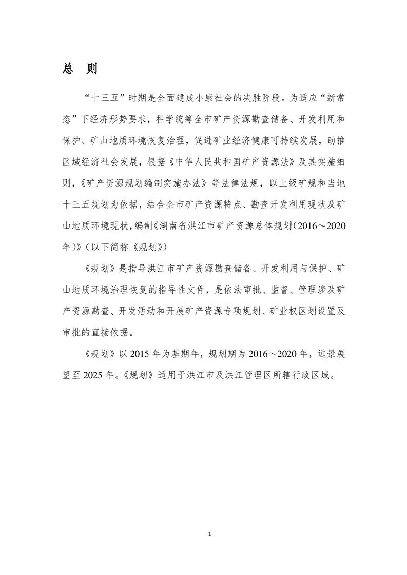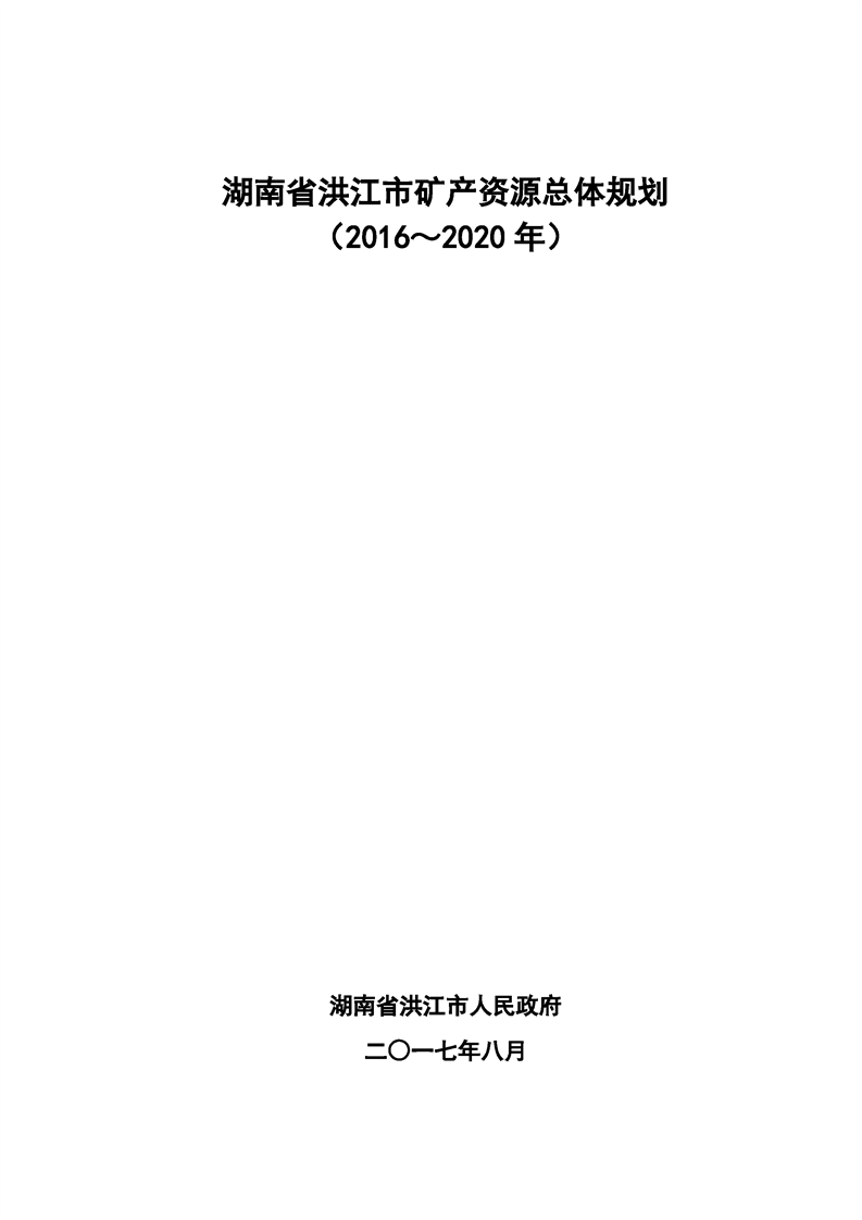 湖南省洪江市矿产资源总体规划(2016-2020年)