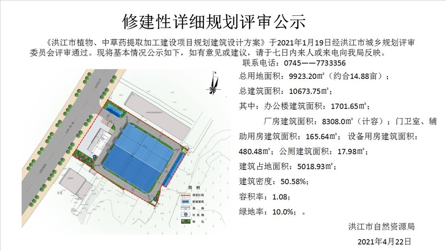 洪江市植物、中草药提取加工建设项目修建性详细规划评审公示