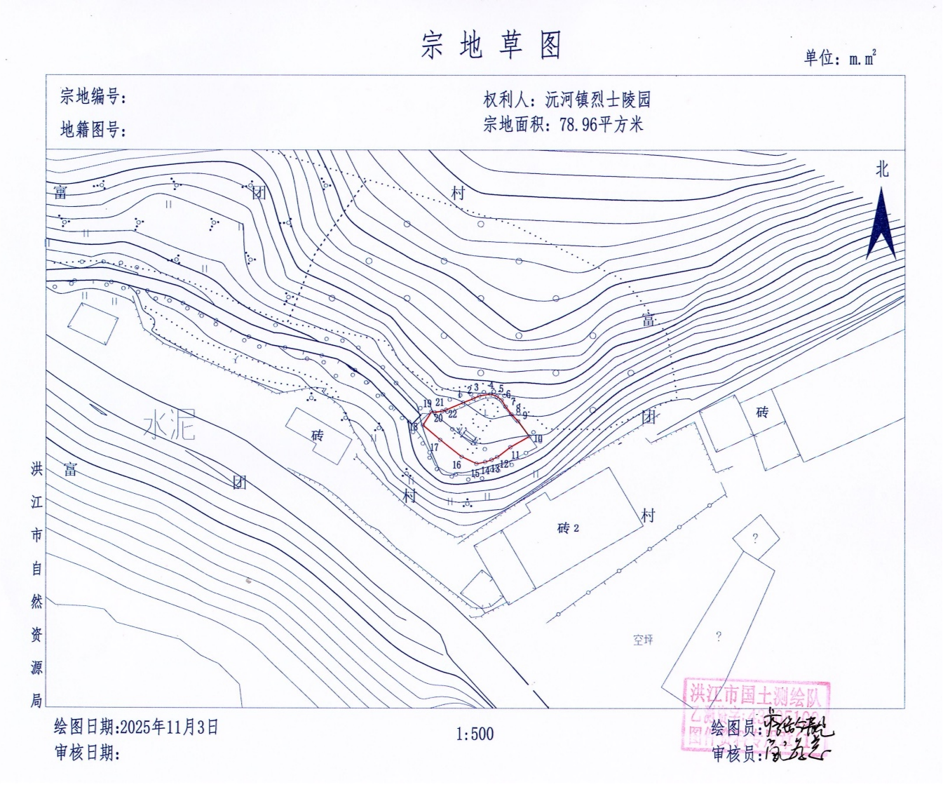 洪江市沅河镇红军烈士陵园,该宗地坐落于沅河镇富团村9组,宗地面积为78.96平方米,现场指界确权,宗地权属四至权利人皆签字认可无异议。