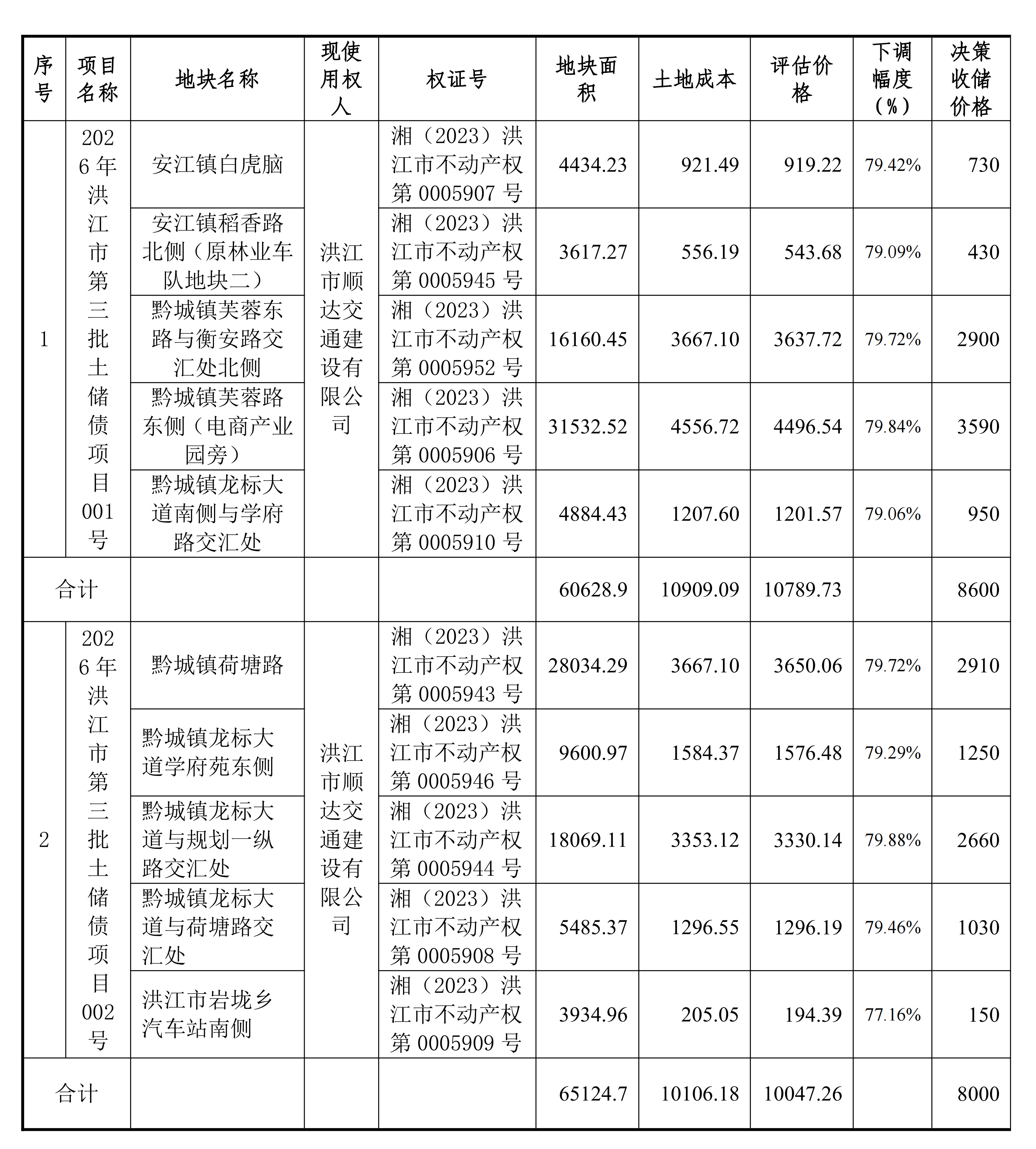 洪江市2026年土地储备专项债拟申报项目表