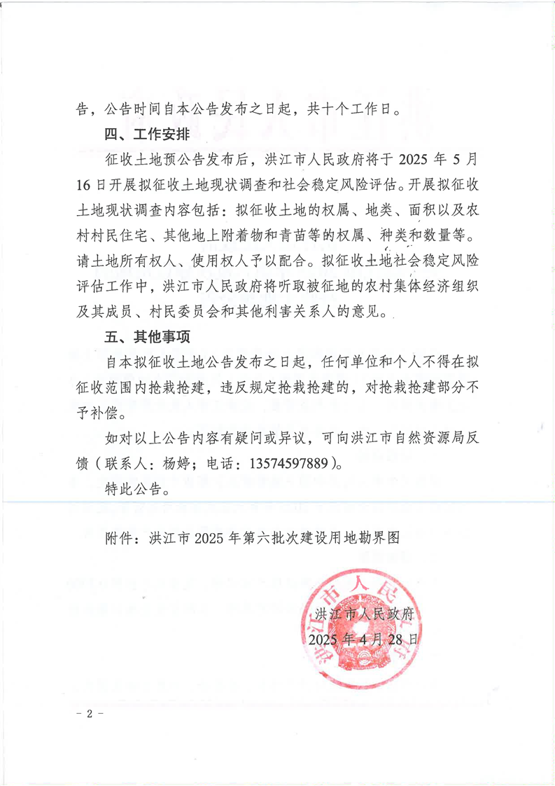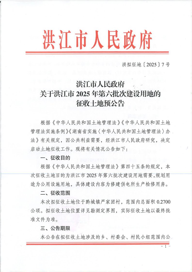 关于洪江市2025年第六批次建设用地的征收土地预公告