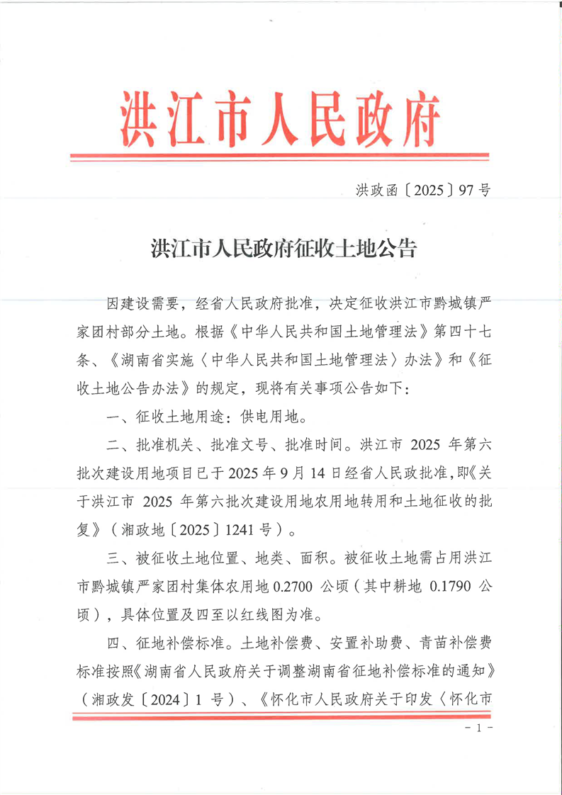 洪江市人民政府征收土地公告 洪政函〔2025〕97号