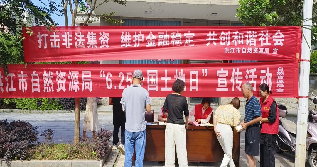 2023年6月25日是第33个全国“土地日”,洪江市自然资源局在玉壶路局办公楼旁开展了以“节约集约用地 严守耕地红线”为主题的普法宣传活动。