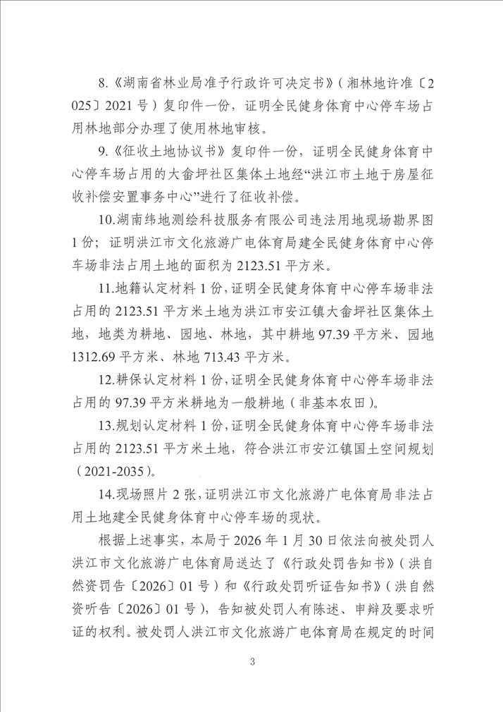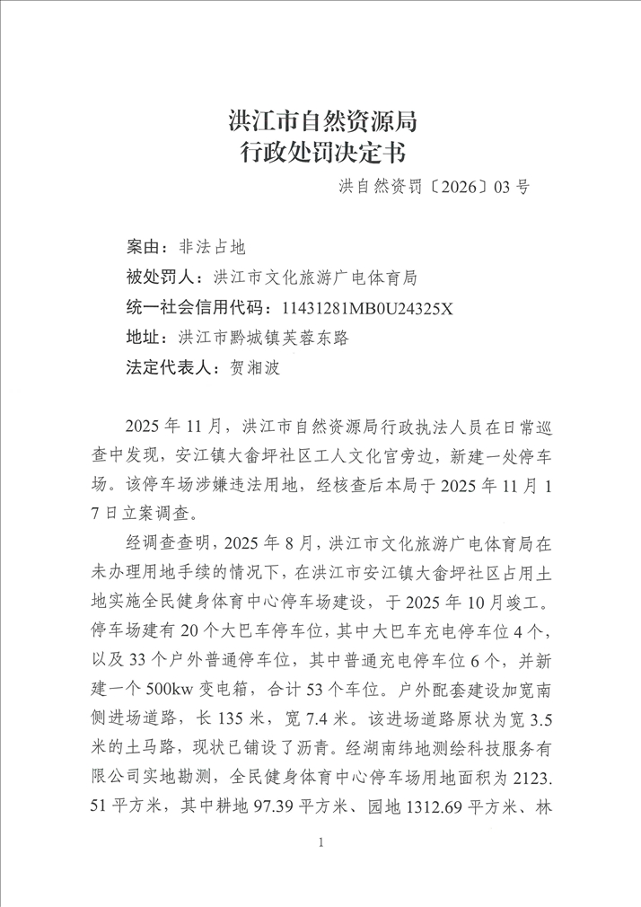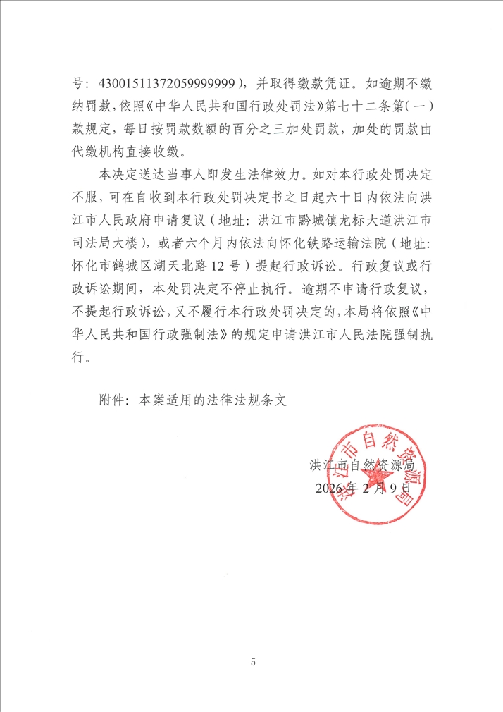 洪江市自然资源局行政处罚决定书(洪自然资罚〔2026〕第03号)