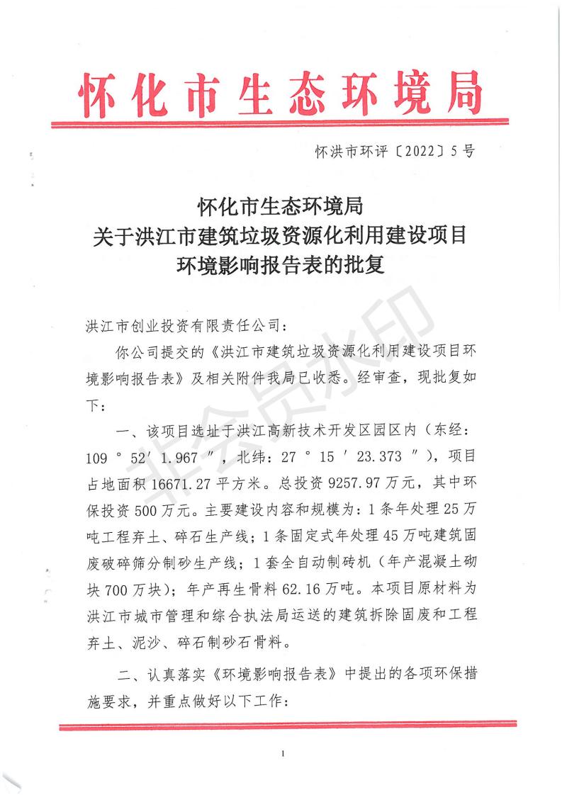 关于洪江市建筑垃圾资源化利用建设项目环评批复的公示