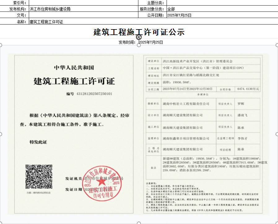 中国·洪江农产品交易中心(第一阶段)建设项目(EPC)