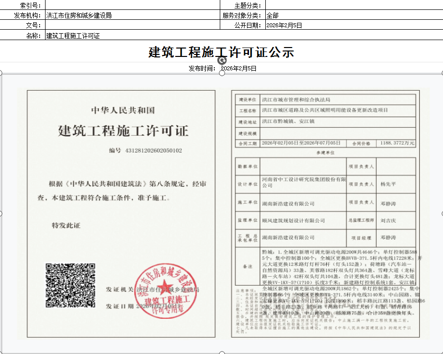 洪江市城区道路及公共区域照明用能设备更新改造项目