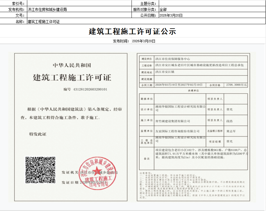 洪江市安江城东老旧片区城市基础设施更新改造项目工程总承包