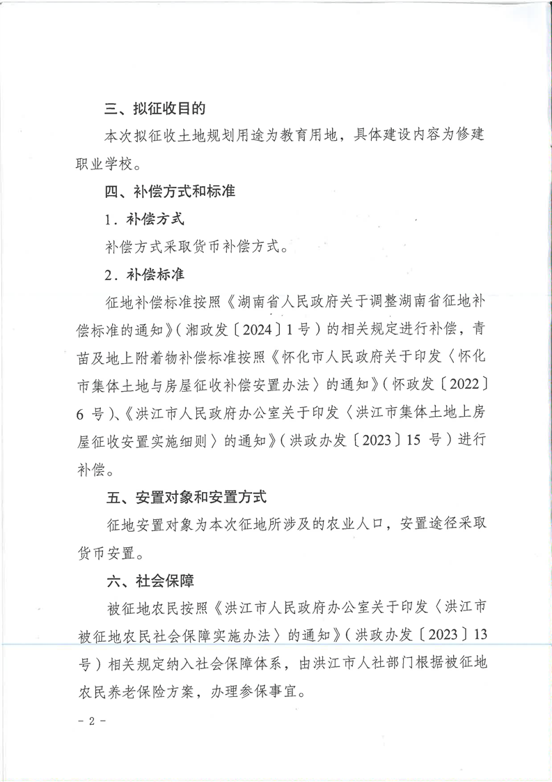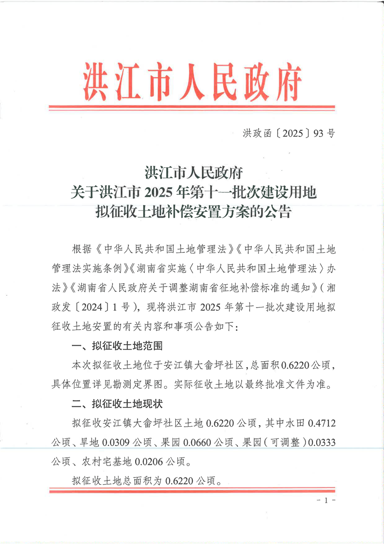 洪江市人民政府关于洪江市2025年第十一批次建设用地拟征收士地补偿安置方案的公告