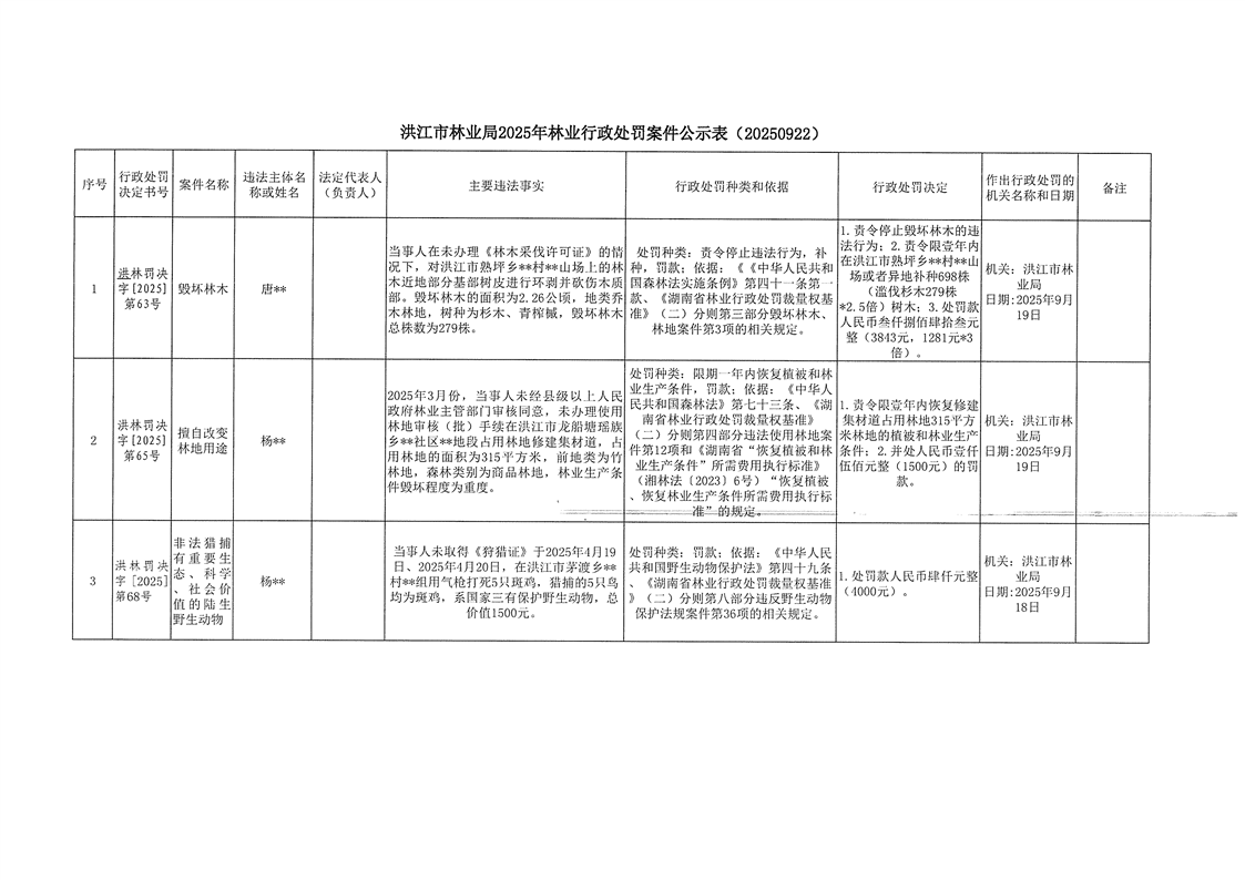 洪江市林业局2025年林业行政处罚案件公示表(20250922)