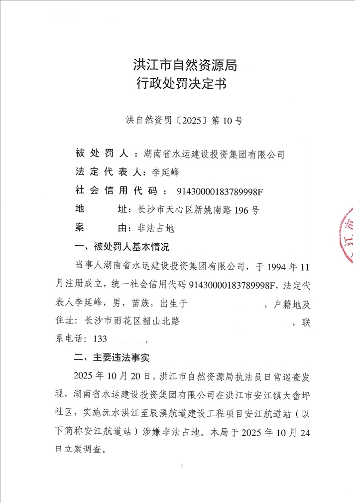 洪江市自然资源局行政处罚决定书(洪自然资罚〔2025〕第10号)