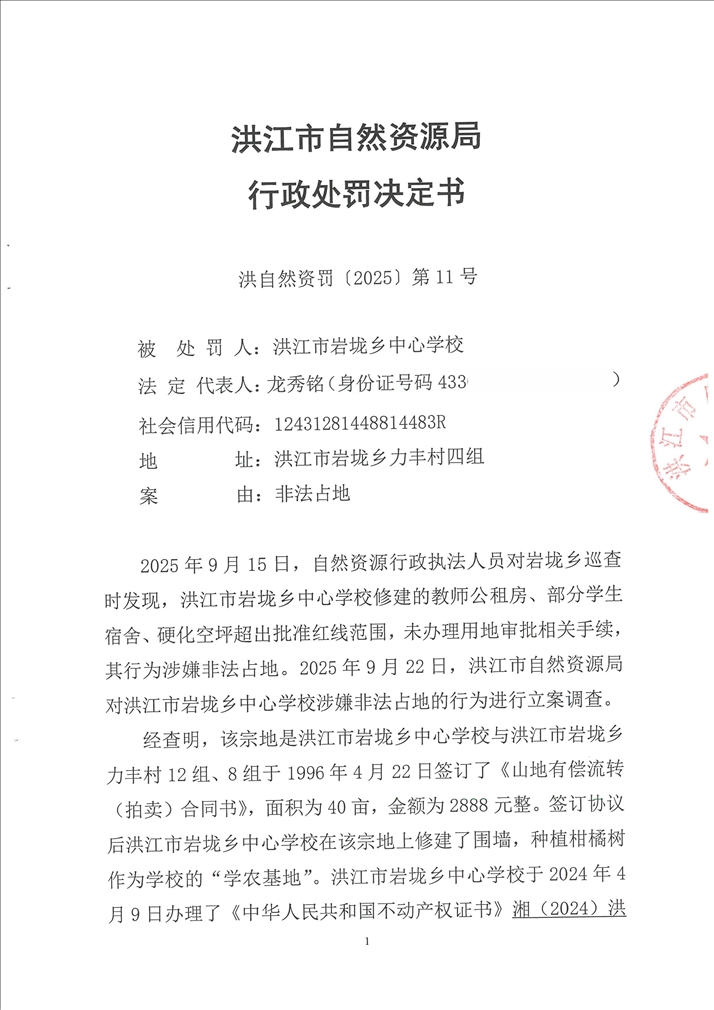 洪江市自然资源局行政处罚决定书(洪自然资罚〔2025〕第11号)