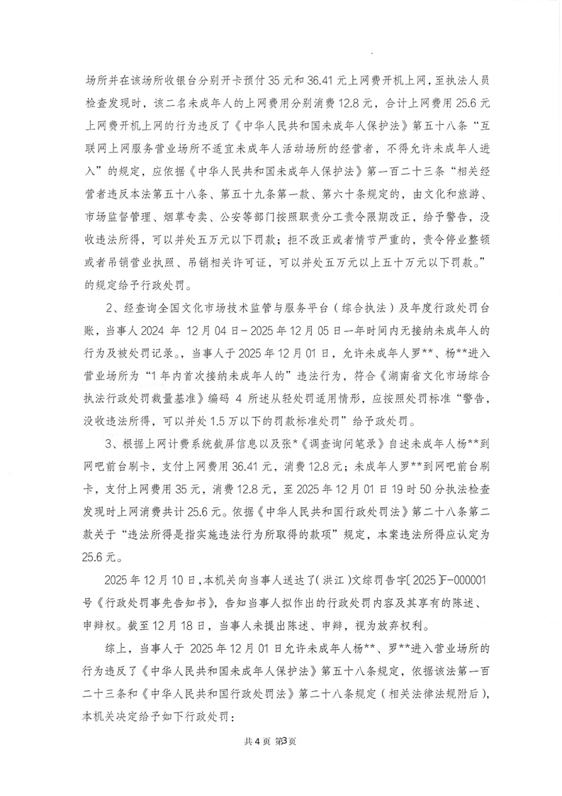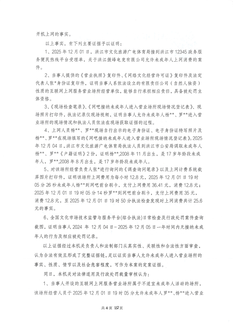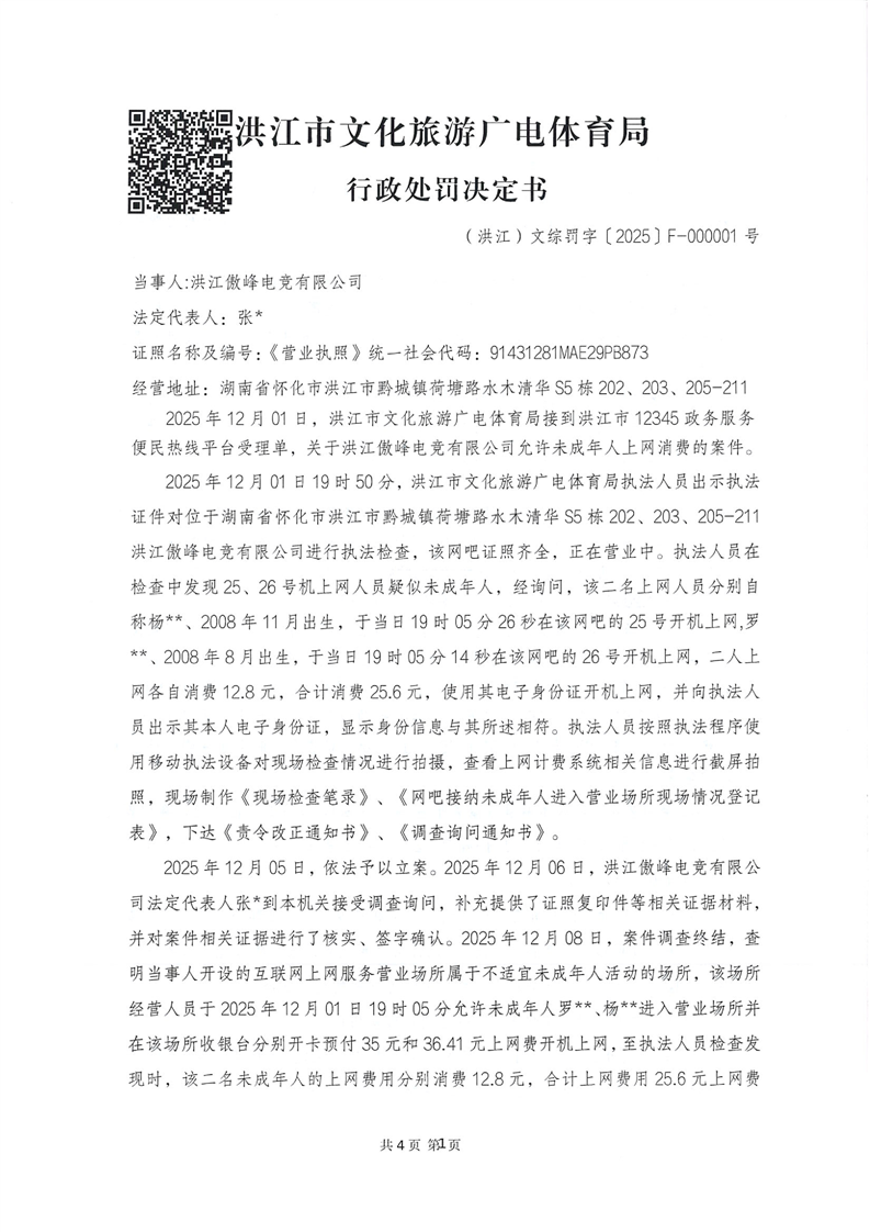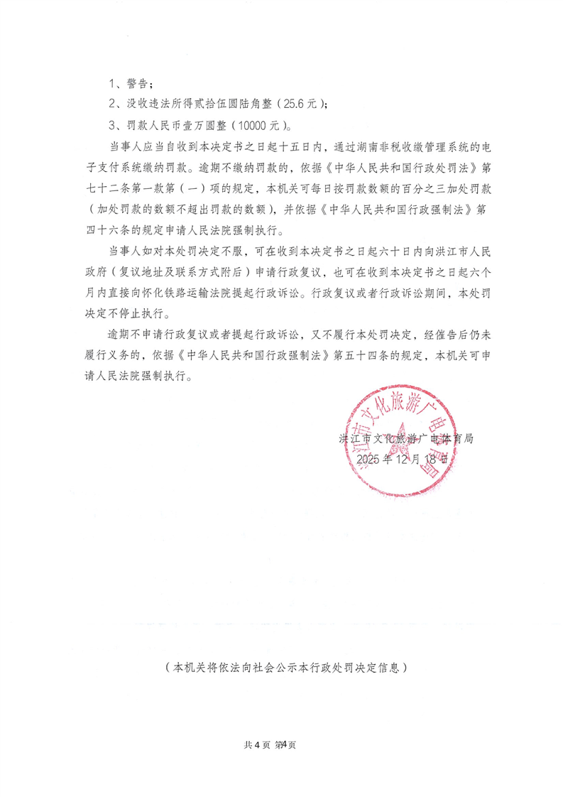 洪江市文化旅游广电体育局行政处罚决定书(洪江)文综罚字〔2025〕F-000001号