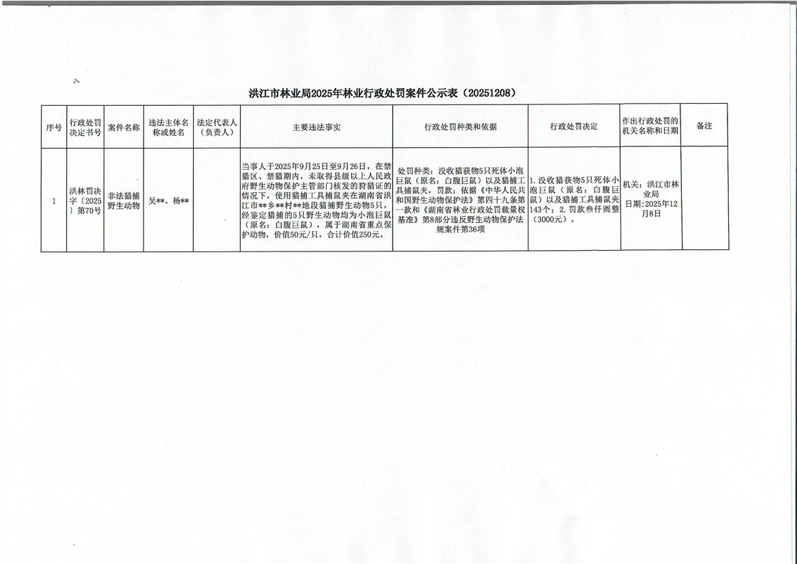 洪江市林业局2025年林业行政处罚案件公示表(20251208)