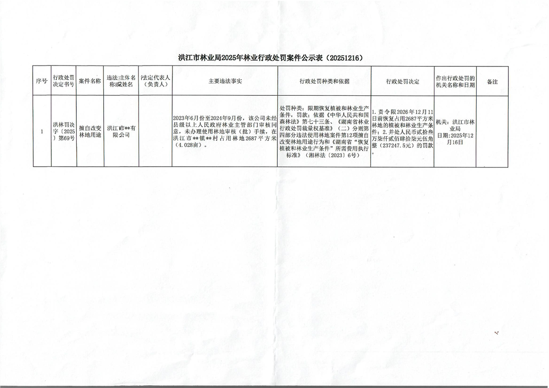 洪江市林业局2025年林业行政处罚案件公示表(20251216)