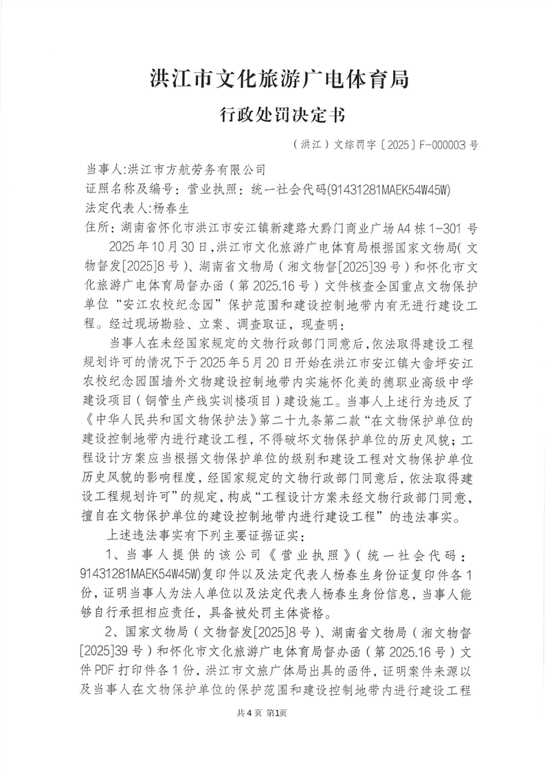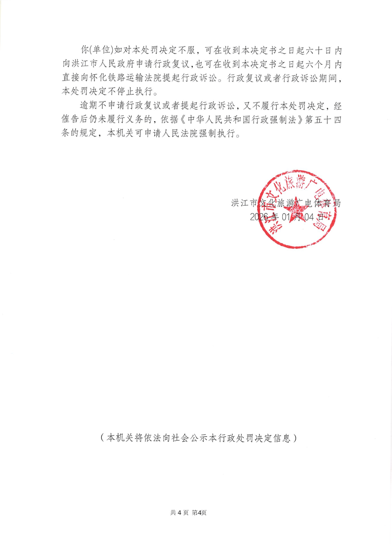 洪江市文化旅游广电体育局行政处罚决定书(洪江)文综罚字〔2025〕F-000003号