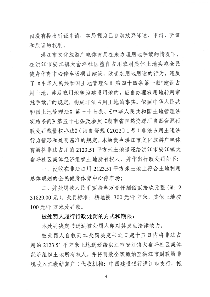 洪江市自然资源局行政处罚决定书(洪自然资罚〔2026〕第03号)