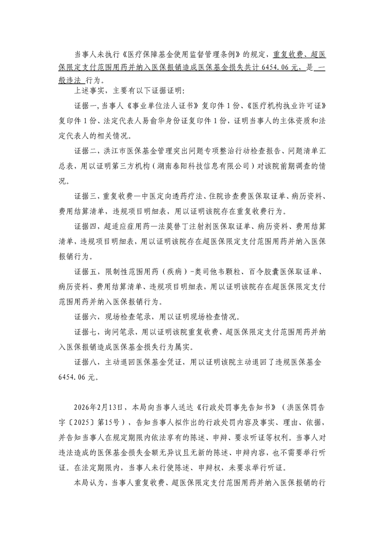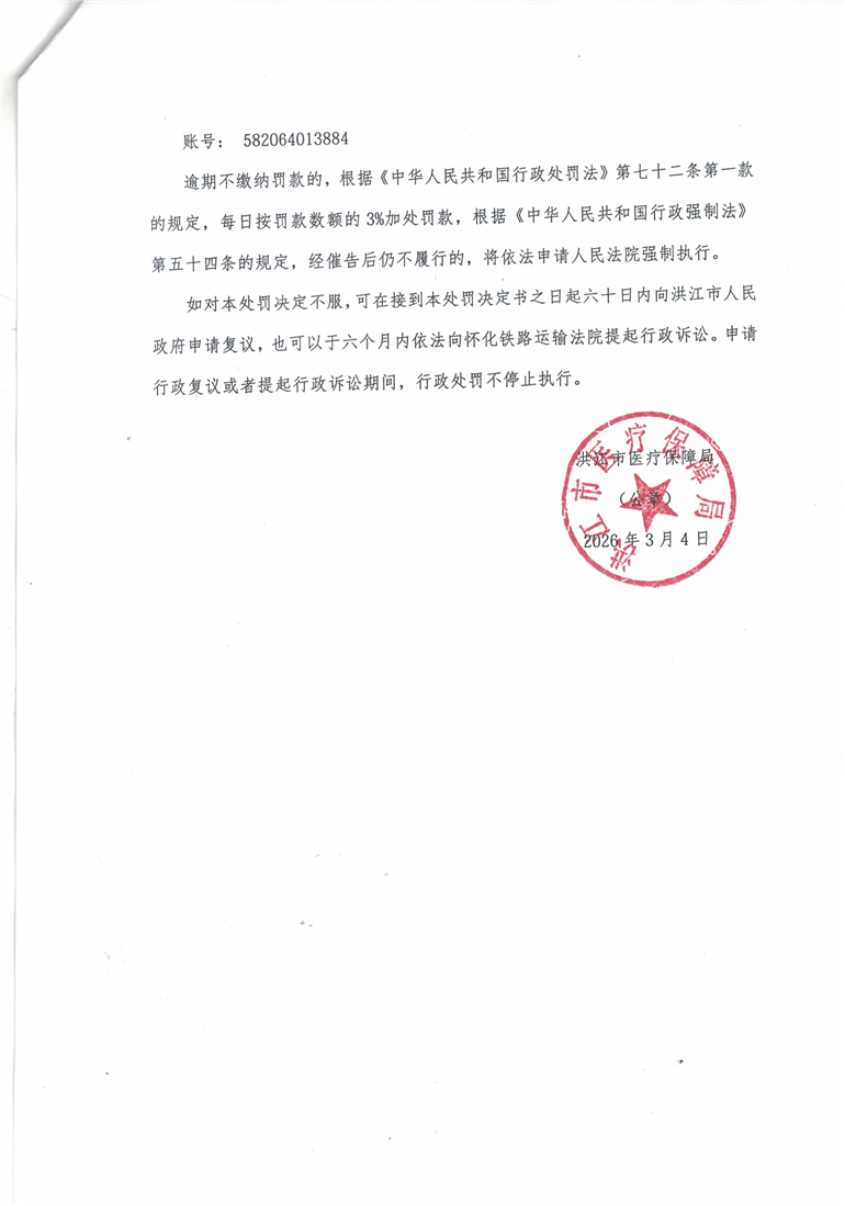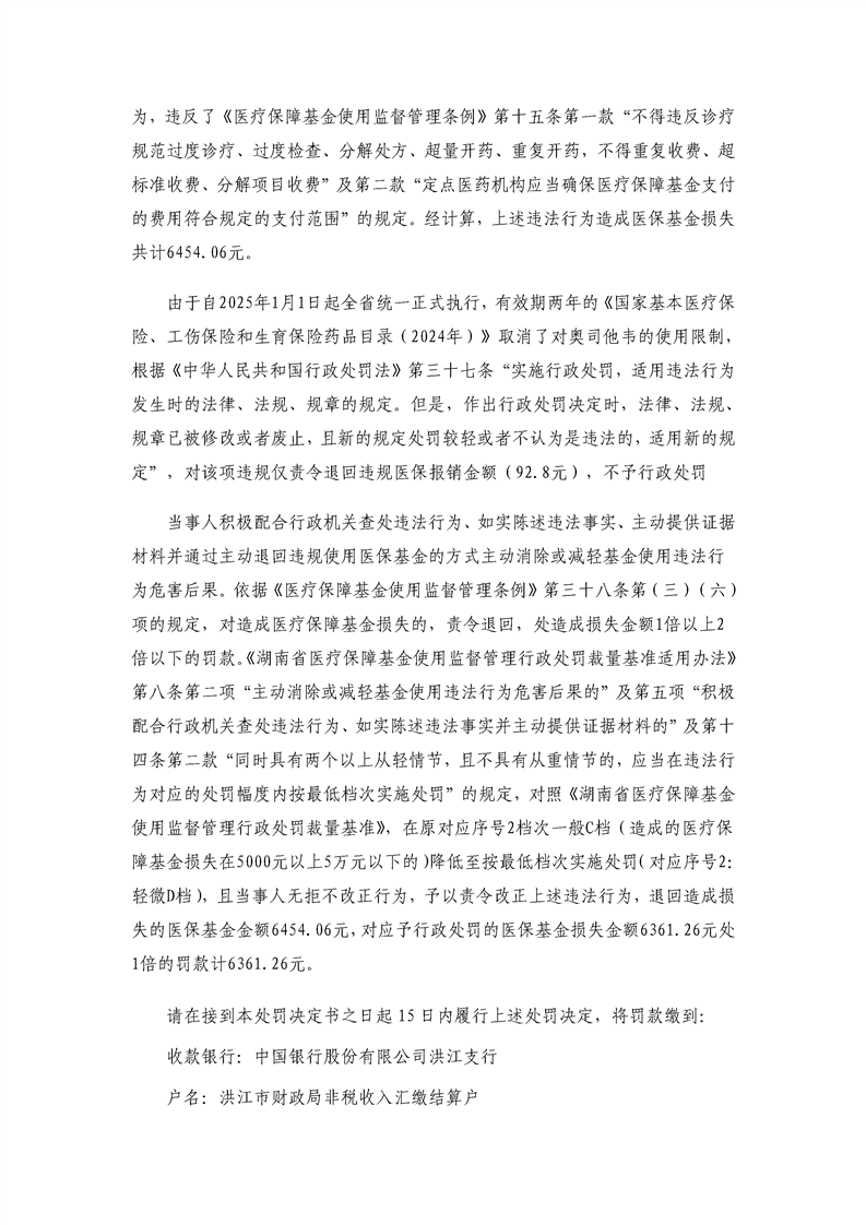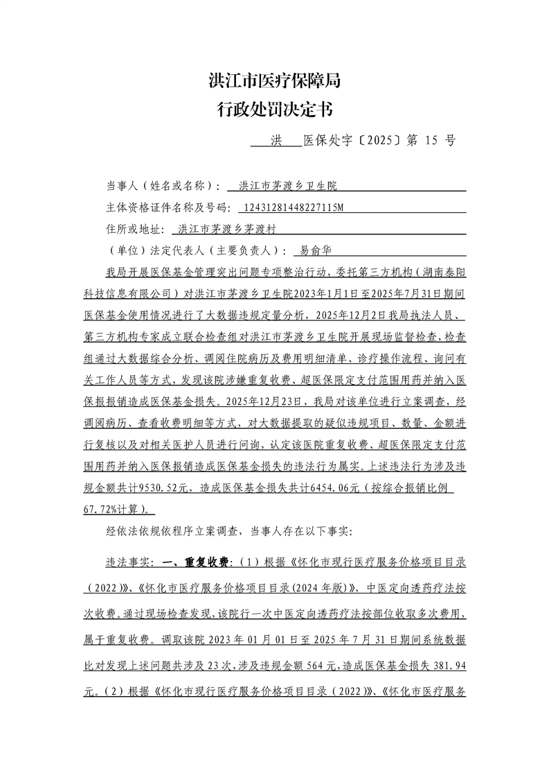 洪江市医疗保障局行政处罚决定书(洪医保罚字〔2025〕第15号)