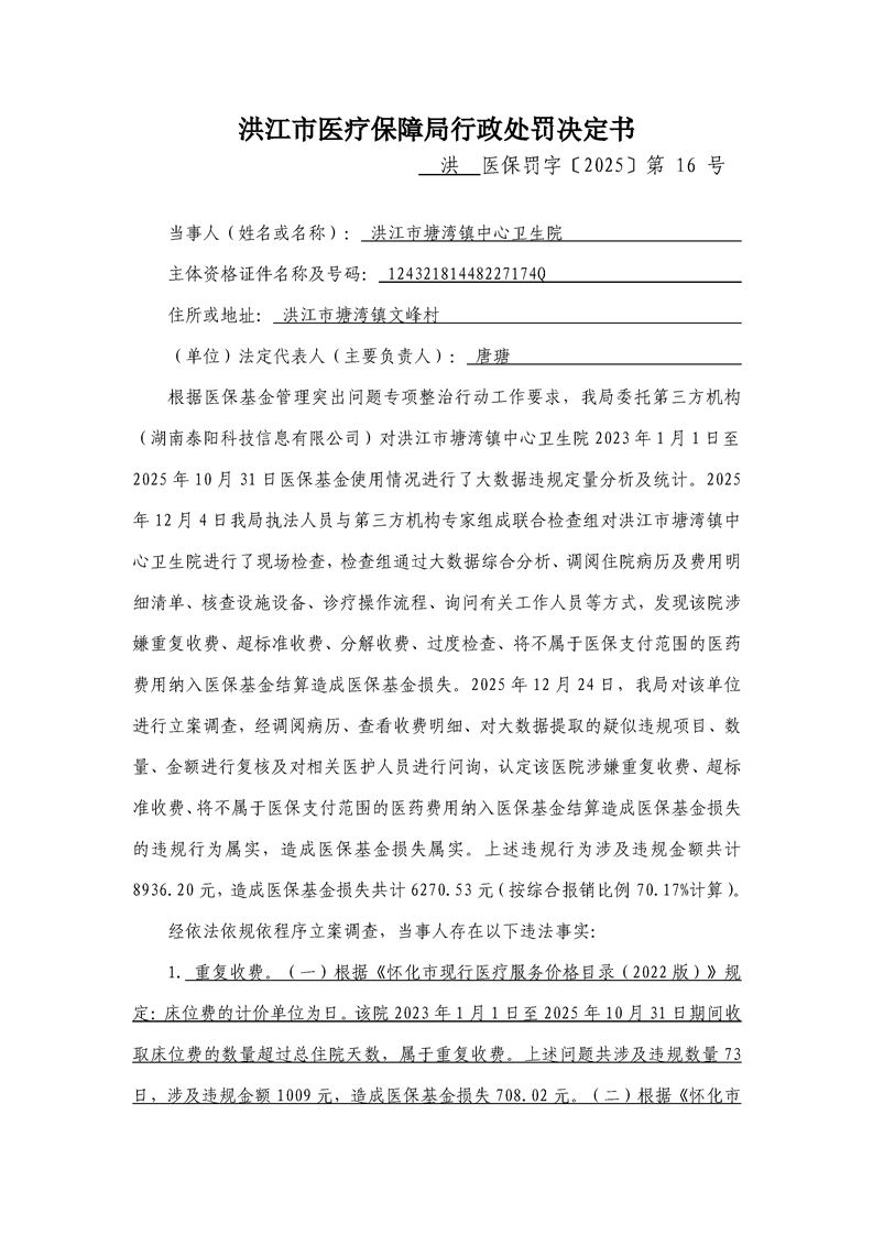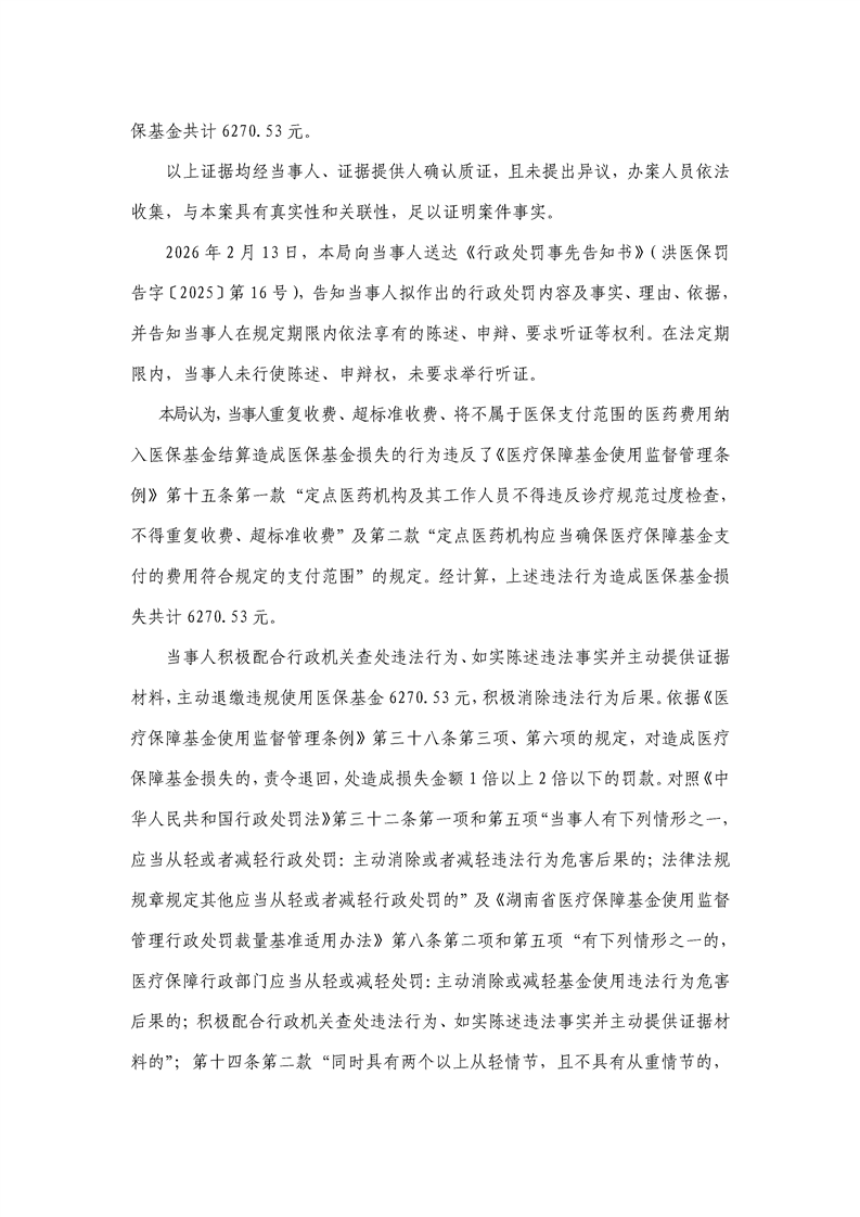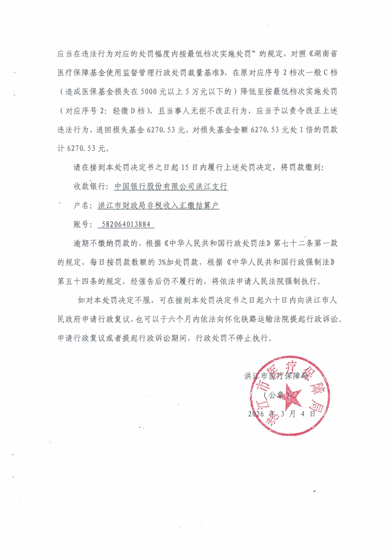 洪江市医疗保障局行政处罚决定书(洪医保罚字〔2025〕第16号)