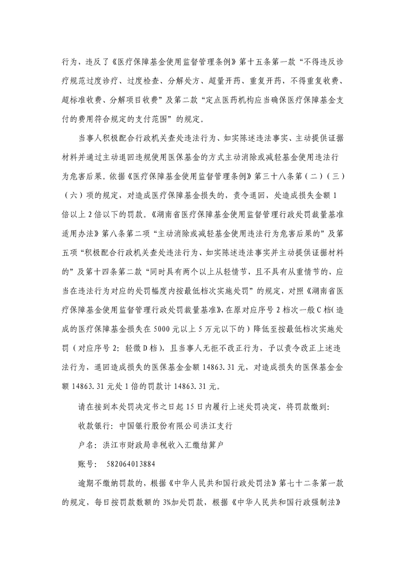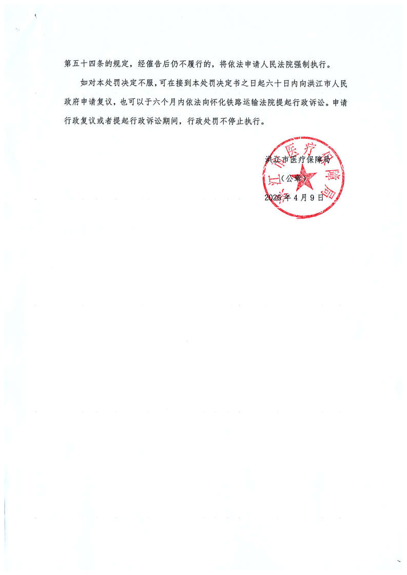 洪江市医疗保障局行政处罚决定书(洪医保罚字〔2026〕第1号)